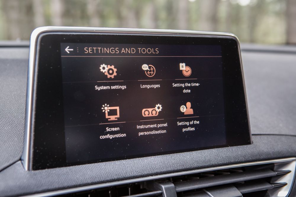 Sistemul multimedia este modern și, deși diagonala de 7 inci a ecranului tactil nu le egalează pe cele ale concurenților, butoanele fizice aflate lângă acesta simplifică navigarea. Și pe banchetă mă simt confortabil, deși spațiul la cap este, alături de cel din 5008, cel mai mic din grup (89 cm).