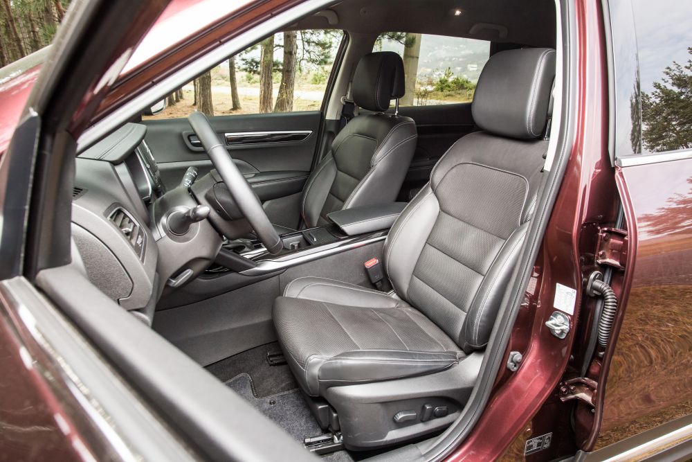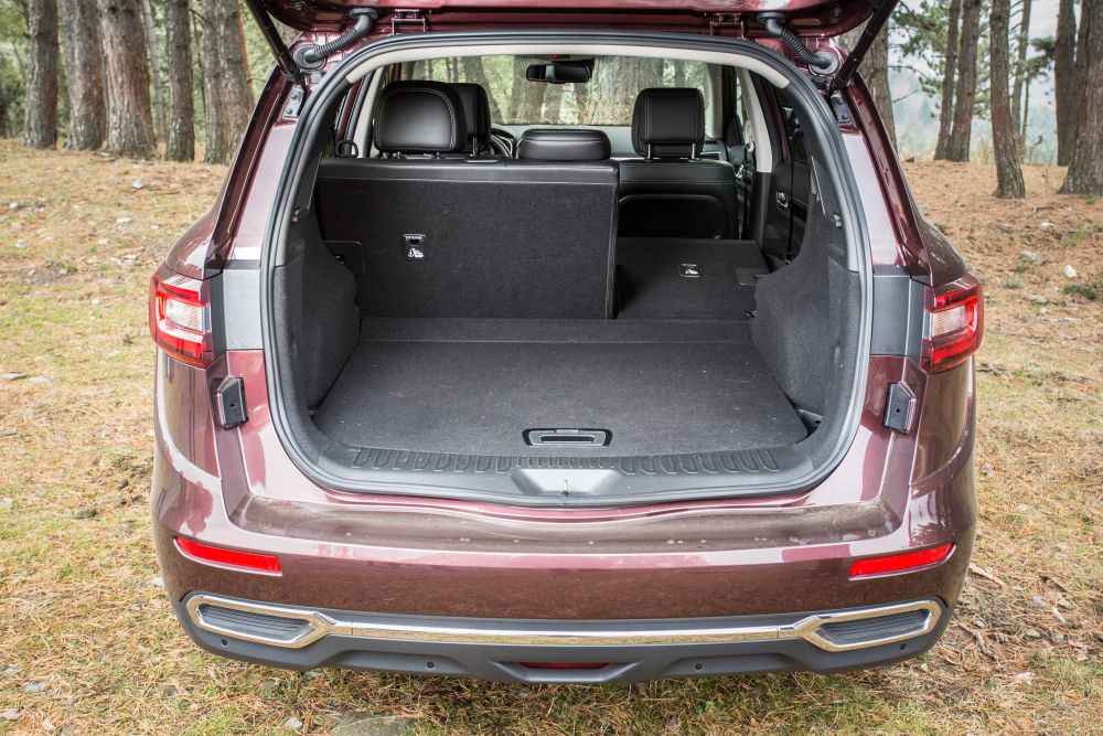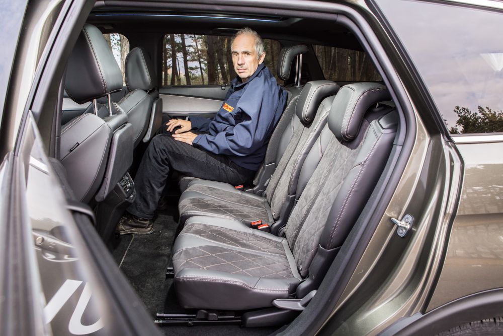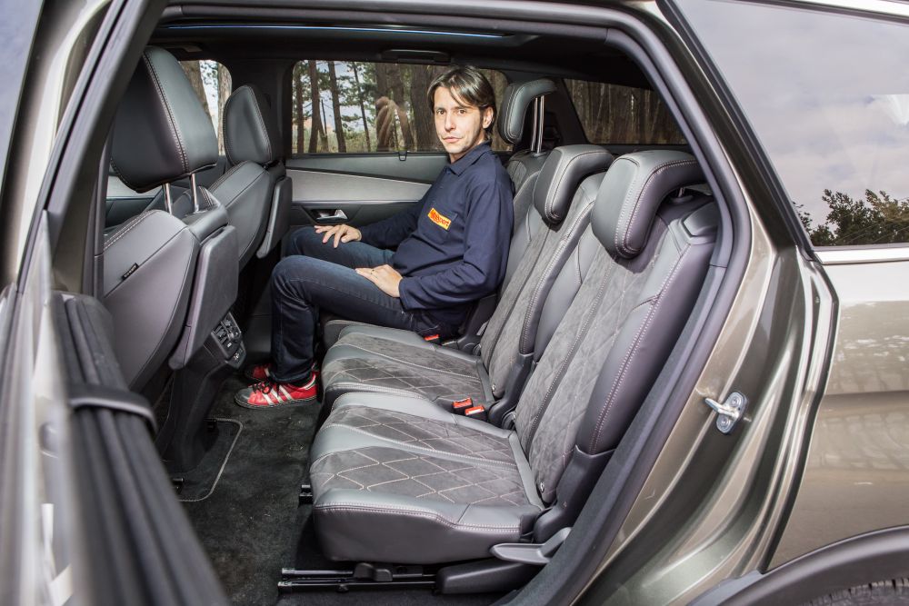 Nu primesc mufe USB în spate, iar cotiera centrală are suprafața tare, pentru că nu este o cotieră în sine (ca la Kodiaq), ci se obține prin rabatarea completă a locului din mijloc (ca la 5008), lăsând (nota bene) un tunel complet liber către portbagaj. În rest – toate bune: bancheta glisează, spătarul se înclină în 7 unghiuri, iar spațiul mediu la genunchi, de 26 cm, este peste cele oferite de Koleos și Kodiaq.