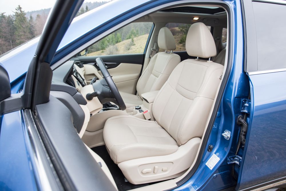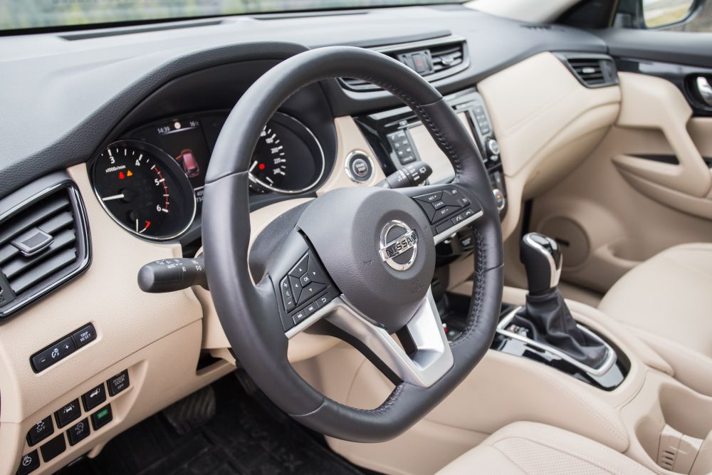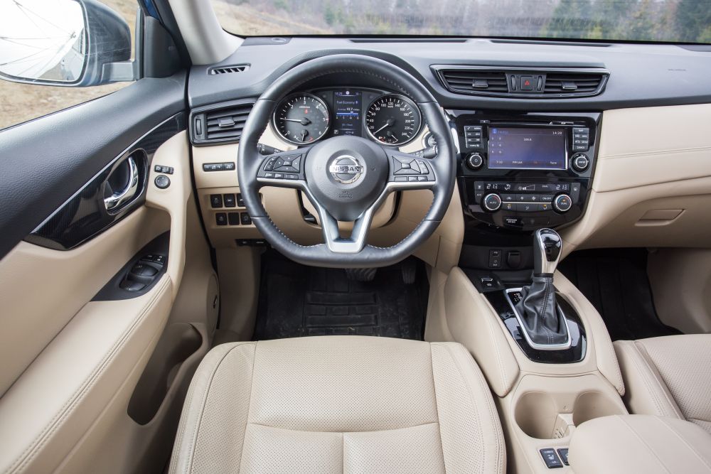 Mă întâlnesc cu el din 2013 pe șoselele din Europa, dar nici acum nu mi se pare că timpul și-a lăsat amprenta asupra lui. Japonezii au avut grijă să-l mențină tânăr, adăugându-i, odată cu faceliftul din iulie anul trecut, faruri și proiectoare de ceață redesenate, finisaje cromate la protecțiile laterale, o gamă nouă de jante pe 17 și 18 inci și patru culori noi. Stau perfect la volan, pentru că, deși garda la sol de 21 cm (identică cu a lui Koleos și Kodiaq) îmi asigură o poziție înaltă, gambele stau mai înclinate decât la adversari, asemenea posturii din autoturisme.