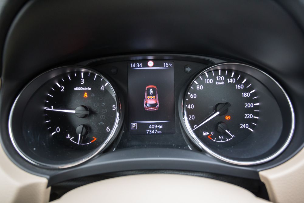 Meniurile sunt simple, dar nu are buton de volum și integrează o parte din funcțiile sistemului de climatizare, de aceea trebuie să pătrund prin meniuri pentru a le accesa. De îndată ce pornesc motorul, îmi devine evidentă înrudirea cu X-Trail: cele două modele împart mai bine de 60% dintre piese, alături de platforma CMF și combinația motor-cutie CVT.