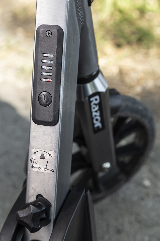 La un longboard, adaugă-i un ghidon, scapă de două roți și obții o trotinetă. Razor E Prime, în cazul meu. Un vehicul atât de compact, simplu și pur, încât unul dintre colegii mei, deloc străin de lumea „necuvântătoarelor” vehicule electrice, m-a întrebat șocat unde-și ascunde bateriile. Și asta, pentru că arată fix ca o trotinetă simplă de picior. Ei bine, bateriile și le ține în platformă și sunt suficient de mari pentru a rezista 10,9 km cu cele 70 kg ale subsemnatului, la viteze de peste 20 km/h.