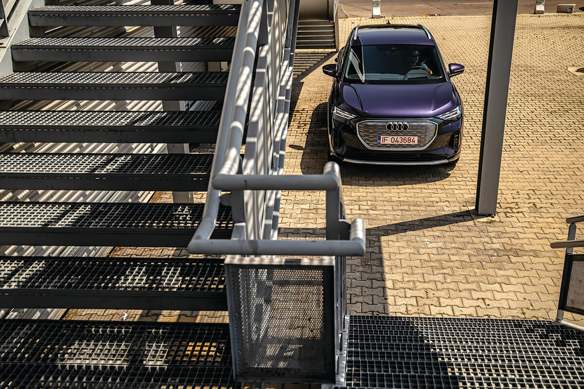 Când pui mâna pe meniul modelelor electrice din Ingolstadt, Q4 e-tron este primul fel. Cel mai accesibil Audi fără emisii este doar un pic mai mare decât Q3, dar la fel de spațios ca un Q5. Iar cele două motoare împing hotărât, fără să necesite multă energie, așa că autonomia este de aproape 400 km. Foto: Bogdan Paraschiv