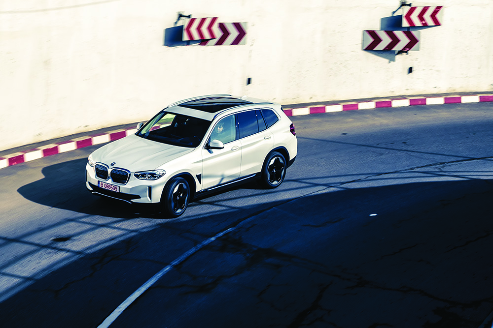 Vrei să te dai pilot? iX3 te susține cu accelerații consistente, deși nu la fel de rapide ca ale adversarilor. Dacă aceștia au câte un motor pe fiecare punte, iX3 are doar unul pe spate. Este, deci, un BMW veritabil prin comportament, cu o agilitate excepțională pe viraje… cu un singur amendament. Dacă e ud pe jos sau bruschezi direcția, reglarea ESP-ului nu are nicio legătură cu caracterul sportiv al mașinii, ci încearcă cu disperare să te repună pe trasă, îngreunând controlul. Bine că incisivitatea nu a știrbit confortul suspensiei, care este unul dintre punctele forte ale lui iX3.