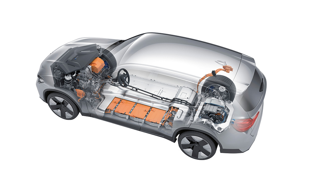 Deși caroseria lui iX3 este cunoscută, motorul electric e complet nou (generația a cincea). Acesta are o structură internă nu tocmai obișnuită – este sincron, dar nu are magneți permanenți în rotor. Aceștia sunt greu de manevrat și necesită utilizarea metalelor rare, care sunt materiale scumpe, produse în principal în China. În schimb, în noul motor câmpul magnetic necesar funcționării este creat prin circulația curentului prin rotor, iar pentru asta sunt necesare contacte glisante, care se pot uza în timp. Totuși, BMW ne asigură că acestea rezistă mai mult decât mașina în sine.