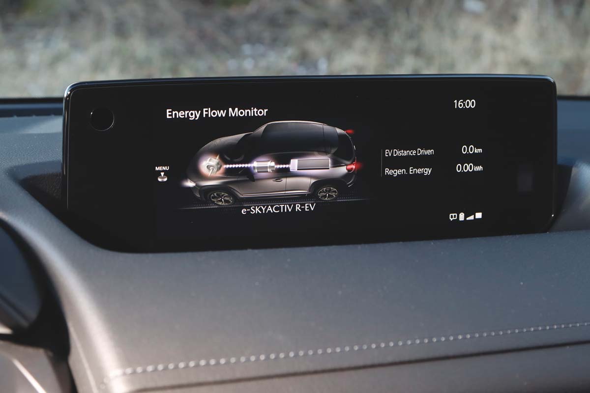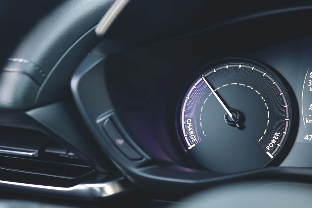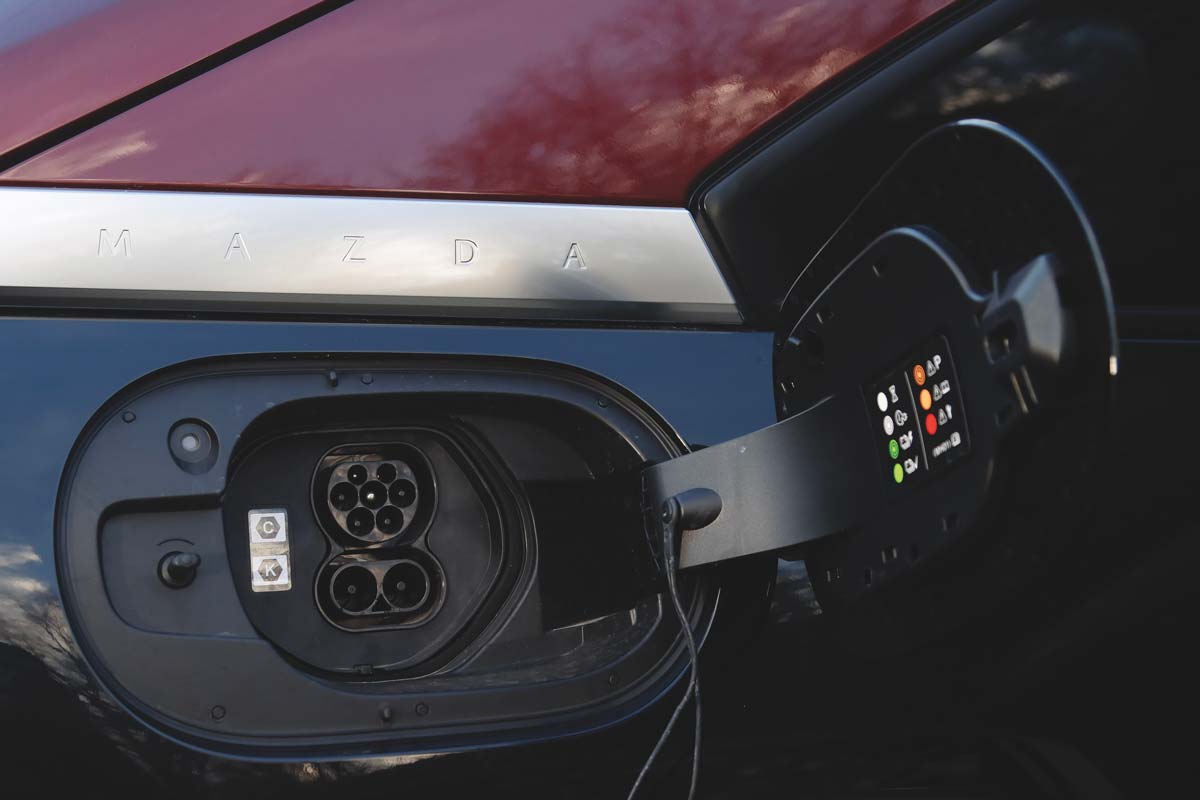 Fix de aceea, e important să încarci bateria de fiecare dată când ai ocazia, mai ales că Mazda îți pune la dispoziție un încărcător la curent continuu, rarisim printre hibrizii plug-in. Drept urmare, în cazul meu timpul de încărcare de la 50 la 80% a fost de aproape un sfert de oră. Chiar dacă nu vrei să încarci la CC, din cauza curentului mai scump, poți cupla bateria la AC, pentru a alimenta cu 11 kW, adică mai repede decât majoritatea PHEV-urilor (3,6–7,2 kW). Deci, fă tot posibilul să mergi cât poți de mult pe curent, nu cu benzină.