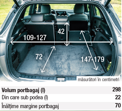 Motorul electric este alimentat de o baterie cu o capacitate utilă de 66,5 kWh, care îngăduie o autonomie oficială de 424 km. Consumul comunicat de constructor este de 17,9 kWh/100 km, însă, în realitate, mașina consumă ceva mai mult, cu climatizarea pornită consumul mediu înregistrat în testul nostru fiind de 22,4. Traseul a inclus și o porțiune de autostradă, parcursă cu viteza legală de 130 km/h, drum național și trafic urban. Cu un stil de condus mai conservator, estimăm un consum mediu de 20 kWh/100 km.