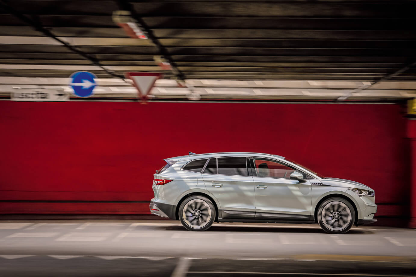 Ieșirea din oraș păstrează liniștea în habitaclu inclusiv la viteze mari, iar suspensia confortabilă lucrează admirabil. Sigur, există ruliu în viraje, dar nu afectează omogenitatea comportamentului dinamic, care rămâne sigur și la limită. Enyaq are toate calitățile unui vehicul de vacanță, tocmai de aceea sunt momente când ai vrea mai multă putere. Sigur, nu e lent (8,5 s până la 100 km/h), dar puterea este livrată lin și progresiv. Uneori, te-ai aștepta la o împingere mai decisă.