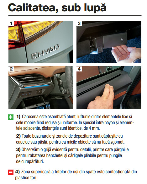 La interior, este chiar și mai spectaculos, grație pachetului Eco-Suite (1819 euro). Pielea de culoare coniac acoperă o mare parte a elementelor din habitaclu și creează o senzație premium, susținută și de substanță, nu numai de aspect. Valoarea se vede însă în atenția pentru asamblări și în detalii pe care nu le au nici modelele mai scumpe din Grupul VW. De exemplu, compartimentul mic din stânga volanului se deschide apăsând pe un buton, coboară lent și are un interior căptușit, pentru ca obiectele din el să nu facă zgomot.