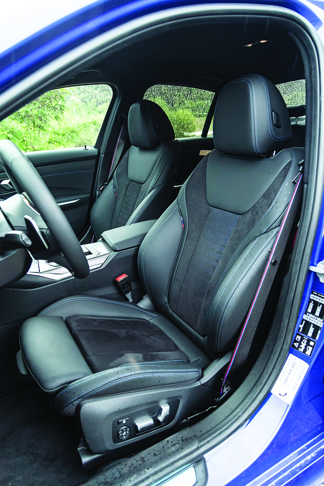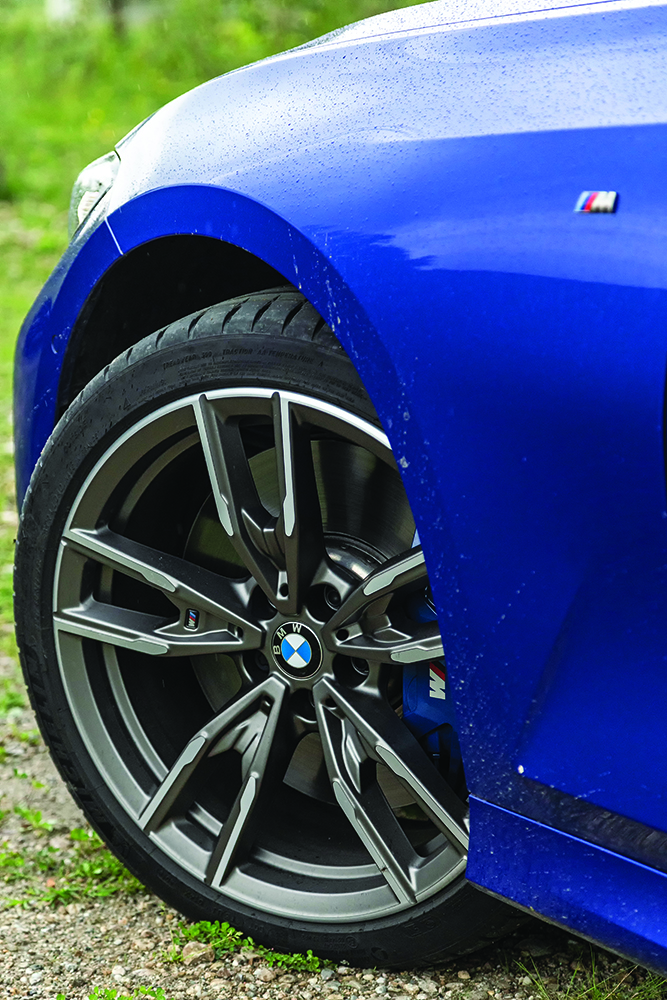 Astfel, pachetul M Tech (359 euro) vine cu două radiatoare suplimentare. Și sistemul de evacuare cu flapsuri standard este special dezvoltat. În plus, sistemul xDrive transmite mai mult cuplu spre spate în modurile Sport și Sport+, iar diferențialul blocabil M Sport controlat electronic este același din modelele M și este tot standard. Legăturile suspensiei față și spate sunt mai rigide, iar suspensia M Sport, mai coborâtă cu 10 mm, și direcția variabilă sport, care la viteze mici are doar două ture și un sfert de la un capăt la altul al cursei volanului, sunt de asemenea standard. Mai poți comanda extra suspensia adaptivă M (615 euro) și jantele de 19 inchi (de la 748 euro, standard 18 inci). Toate sunt prezente pe mașina noastră de test.