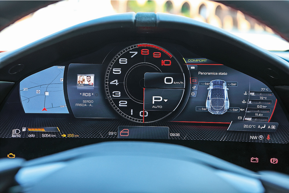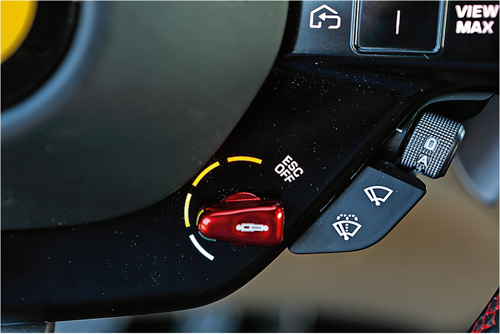 Apoi, Roma e primul GT de la Ferrari care primește selectorul manettino cu cinci poziții, de la Wet la ESC-Off, trecând prin Comfort, Sport și Race. De asemenea, ai și cel mai sofisticat sistem de control al dinamicii, SSC 6.0 (Side Slip Control), care, pe lângă E-Diff, integrează F1-Trac și Ferrari Dynamic Enhancer, ce te lasă să glisezi un anumit unghi cu puntea spate, dar fără a provoca un tête-à-queue.