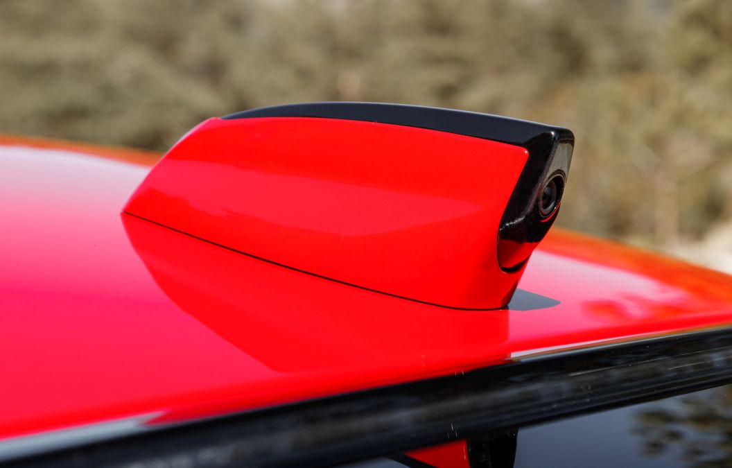 Prin apăsarea unui buton de pe oglindă apare imaginea din spate pe întreaga suprafață a oglinzii preluată de la camera care este montată pe acoperiș și care oferă un unghi cu o deschidere dublă, de 50 grade față de 25 grade la camerele normale.