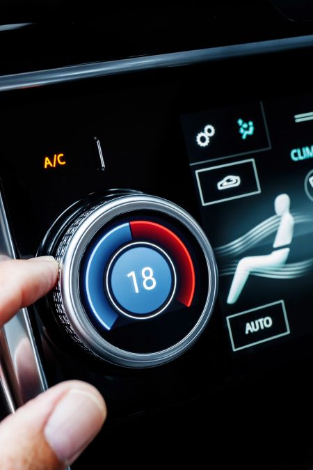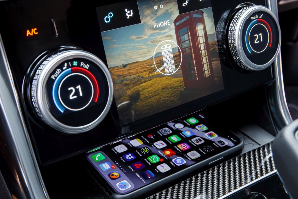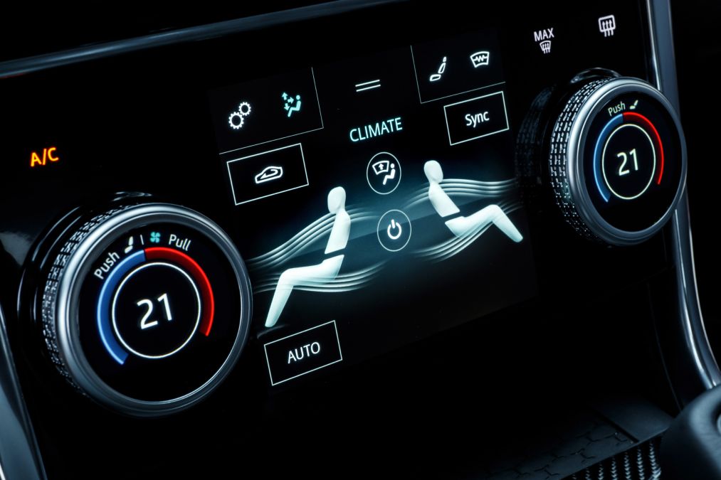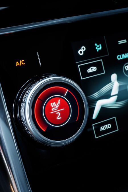 Tot de la I-Pace a fost preluat și sistemul Touch Pro Duo cu două ecrane tactile, disponibil opțional, din care cel de dedesubt este pentru climatizare. Pe ecranul climatizării apar în premieră două butoane rotative care înglobează două mici displayuri pe care se pot afișa informații diferite cum ar fi temperatura sau viteza aerului prin simpla apăsare și rotire a celor două butoane.