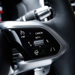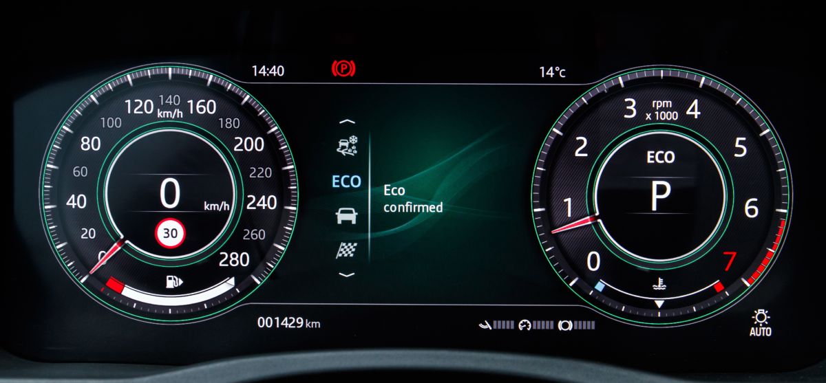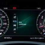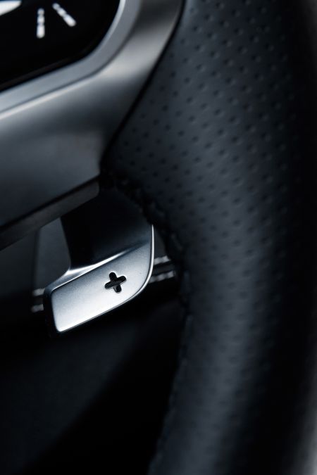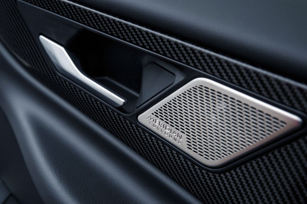 Și în interior se remarcă fețele de uși noi, materialele mai bune pe consola centrală, inserțiile metalice de pe volan, din jurul difuzoarelor și de la consola centrală care arată foarte bine. Volanul este preluat de la I-Pace, iar schimbătorul cutiei de la F-Type l-a înlocuit pe cel rotativ dinainte.