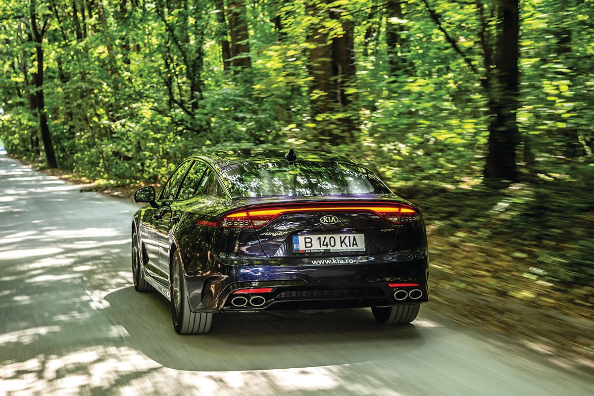 În era în care downsizingul e o religie, Stinger se abate de la canoane și renunță la toate motoarele mai mici, păstrând doar V6-ul turbo de 3,3 litri. Erezie pentru ecologiști, plăcere trupească pură pentru petrolheads. Test Kia Stinger GT. Foto: Bogdan Paraschiv