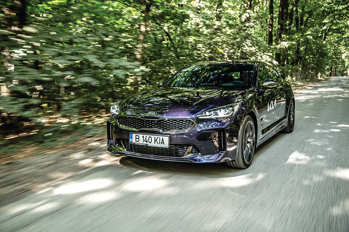 Dar principalul factor care produce fericire se află sub capotă. Toarce ca un pisoi de casă la ralanti și, ajutat de cuplul de 510 Nm de la 1300 rpm, cel mai adesea îi dictează transmisiei să schimbe la 1500 rpm. Pare că se joacă cu cele aproape 2 tone ale mașinii. Dar, de îndată ce accelerezi, chiar dacă te afli în Eco, cutia dezvoltată in-house de Kia reacționează instantaneu. Practic, și poate, și știe să rupă aderența pe spate fără s-o provoci neapărat, dar nu supravirezi mai mult de-o palmă, pentru că ESP-ul te readuce ușor pe trasă. Doar așa, cât să-i impresionezi pe spectatori. Consumul real se învârte în jurul a 15 l/100 km în oraș și 10 afară.