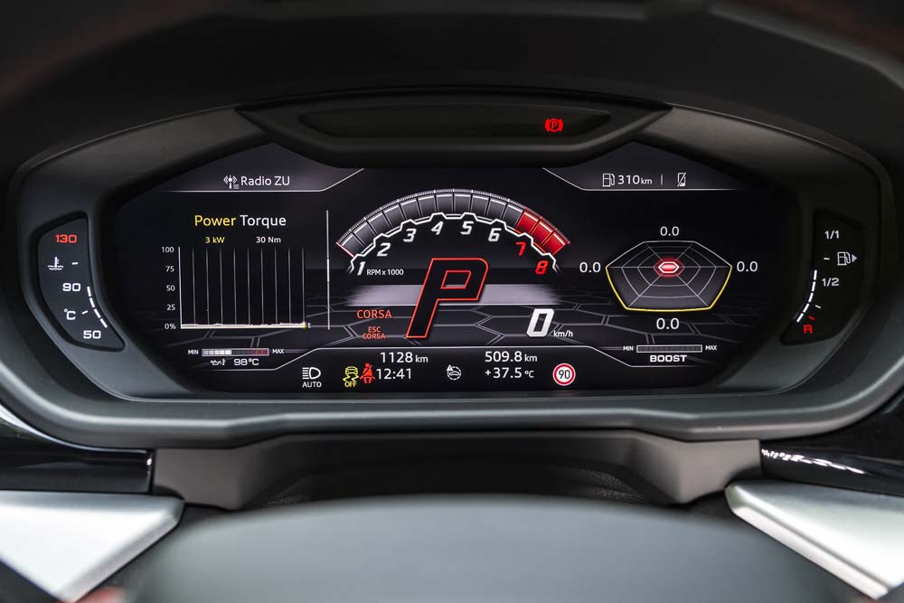 de la Audi, inerente într-o eră a globalizării în care presiunea costurilor este uriașă. Unii fani Lamborghini mai răutăcioși vor remarca repede comenzile geamurilor, ale oglinzilor, de deschidere a ușilor sau cele două rotițe de pe volan care sunt atât de familiare de la Seat Ateca la VW Golf. De asemenea, sistemul multimedia LIS III cu ecran tactil de 10,1 inci și cel de-al doilea display de 8,6 inci cu feedback haptic, care reglează climatizarea și scaunele sunt preluate de la noul Audi A8.