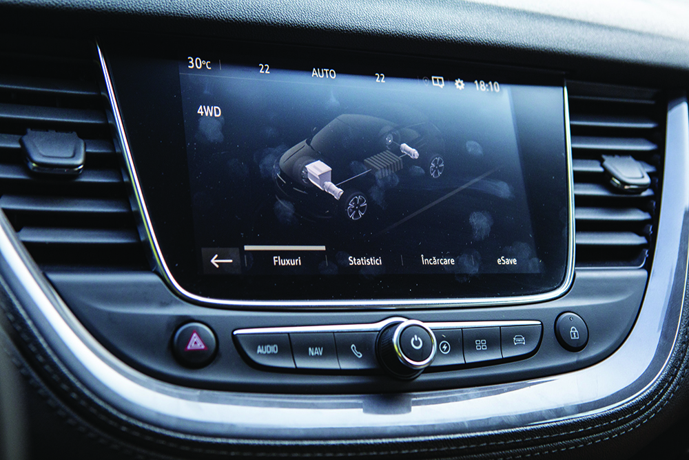 Încărcarea bateriei utilizând motorul termic crește, bineînțeles, consumul de benzină, dar, imediat cum trecem mașina din nou în modul hibrid, acesta va scădea. De exemplu, pe parcursul testului nostru, Grandland X Hybrid4 a înregistrat un consum mediu de 7,2 l/100 km pe un traseu exclusiv urban. La drum lung, cu o secțiune de autostradă, consumul a scăzut la 6,8. Iar dacă activăm modul pentru încărcarea bateriei, consumul va crește