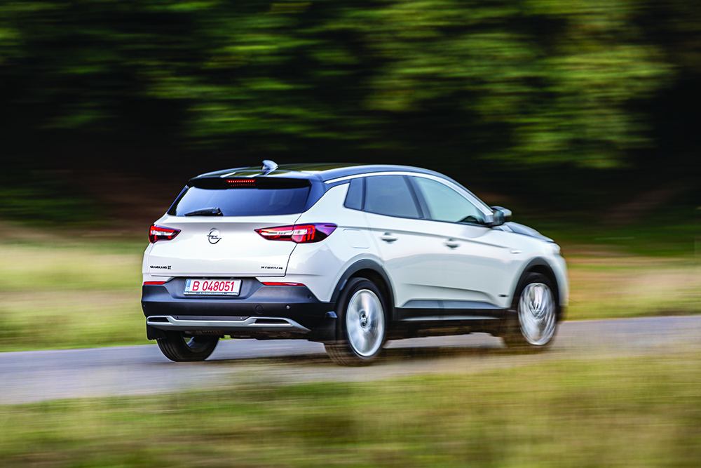 Nemții au adus oficial în România primul SUV hibrid plug-in din gama sa, pe Opel Grandland X Hybrid4. Sistemul format din propulsorul turbo de 1,6 litri și două motoare electrice oferă 300 CP. Foto: Adrian Cobzașu