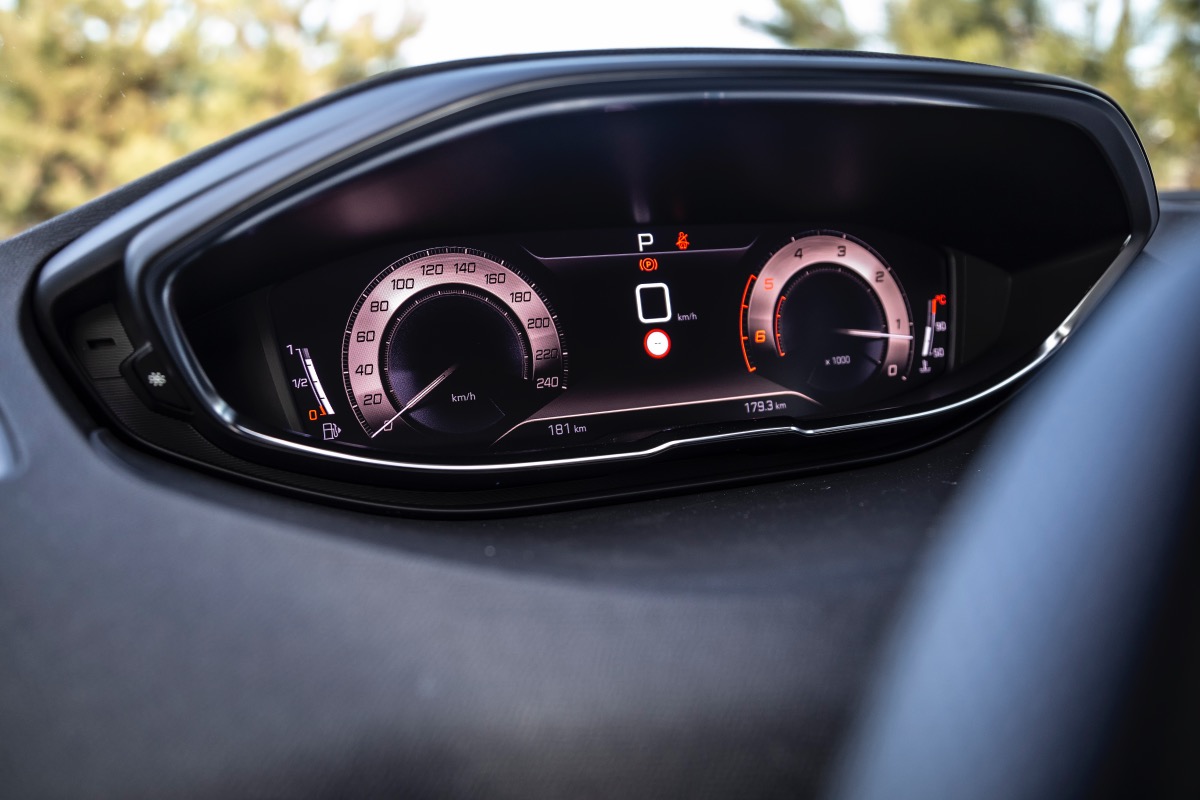 Ce altceva s-a mai schimbat? Interiorul a devenit acum mai primitor, exemplarul de test având inserții dintr-un material asemănător cu pielea întoarsă ce culoare deschisă ce adaugă un plus de căldură interiorului. Avem același volan cu o formă turtită, amplasat destul de jos și instrumentele specifice i-Cockpit, dar display-ul din fața celui de la volan are acum o grafică mult mai bună. Instrumentele de bord sunt personalizabile, de la indicatoare clasice (cu turometru inversat) până la un look minimalist complet digital.
