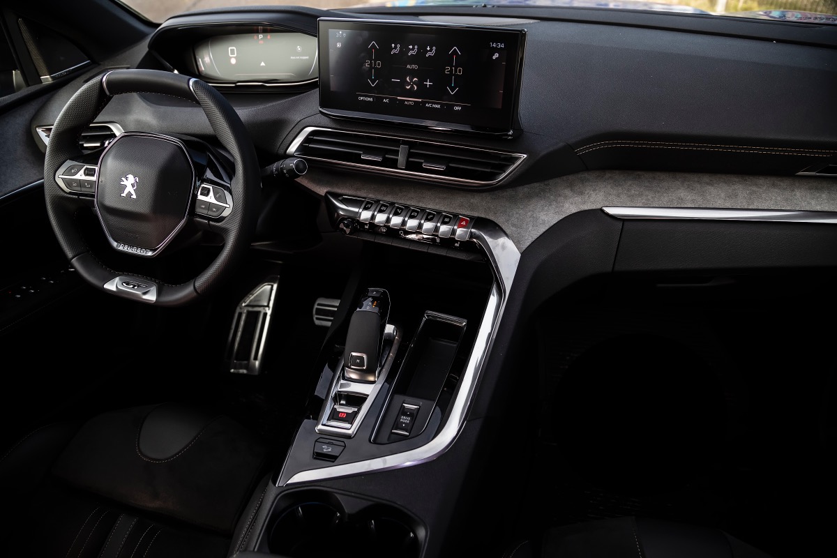 Peugeot a păstrat și două rânduri de butoane fizice, primul dintre acestea asemânându-se cu o claviatură. Sunt butoane care activează meniul specific, dar uneori parcă complică inutil situația.