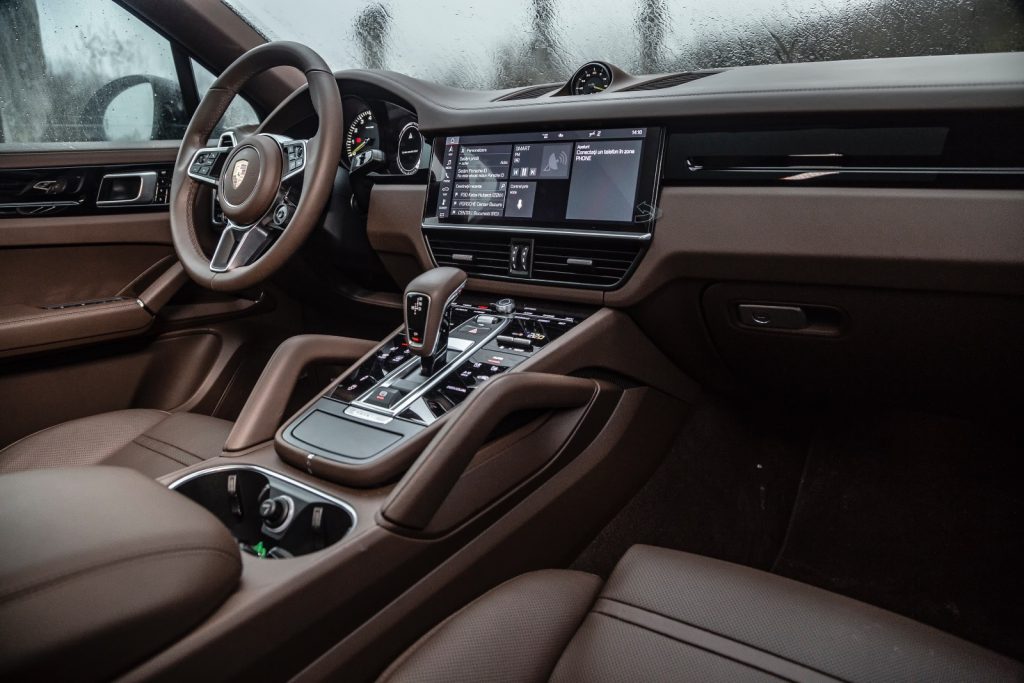 Interiorul este identic cu cel al modelului Cayenne, planșa de bord fiind dominată de cele două ecrane ce încadrează turometrul analogic amplasat central. Contactul a rămas amplasat în partea stângă a volanului, în stilul tradițional Porsche. Consola centrală are un ecran tactil de dimensiuni mari cu un sistem de navigație bine pus la punct și o grafică excelentă.