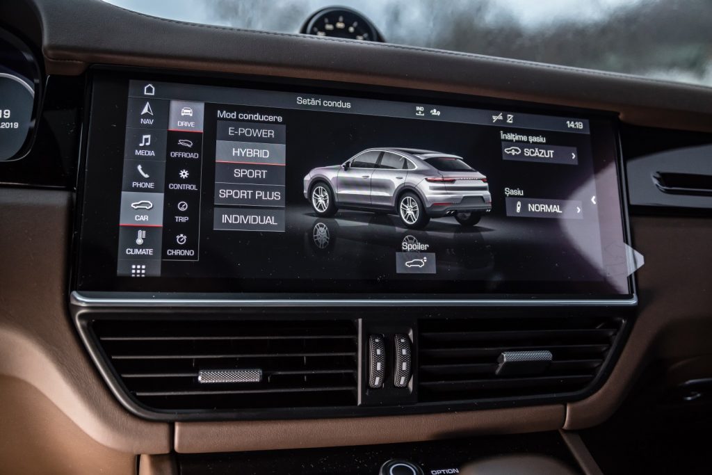 În modul electric, Cayenne Coupe e-Hybrid este chiar agil, motorul electric oferind suficientă putere, dar mai ales cuplu pentru un ritm susținut de deplasare.
