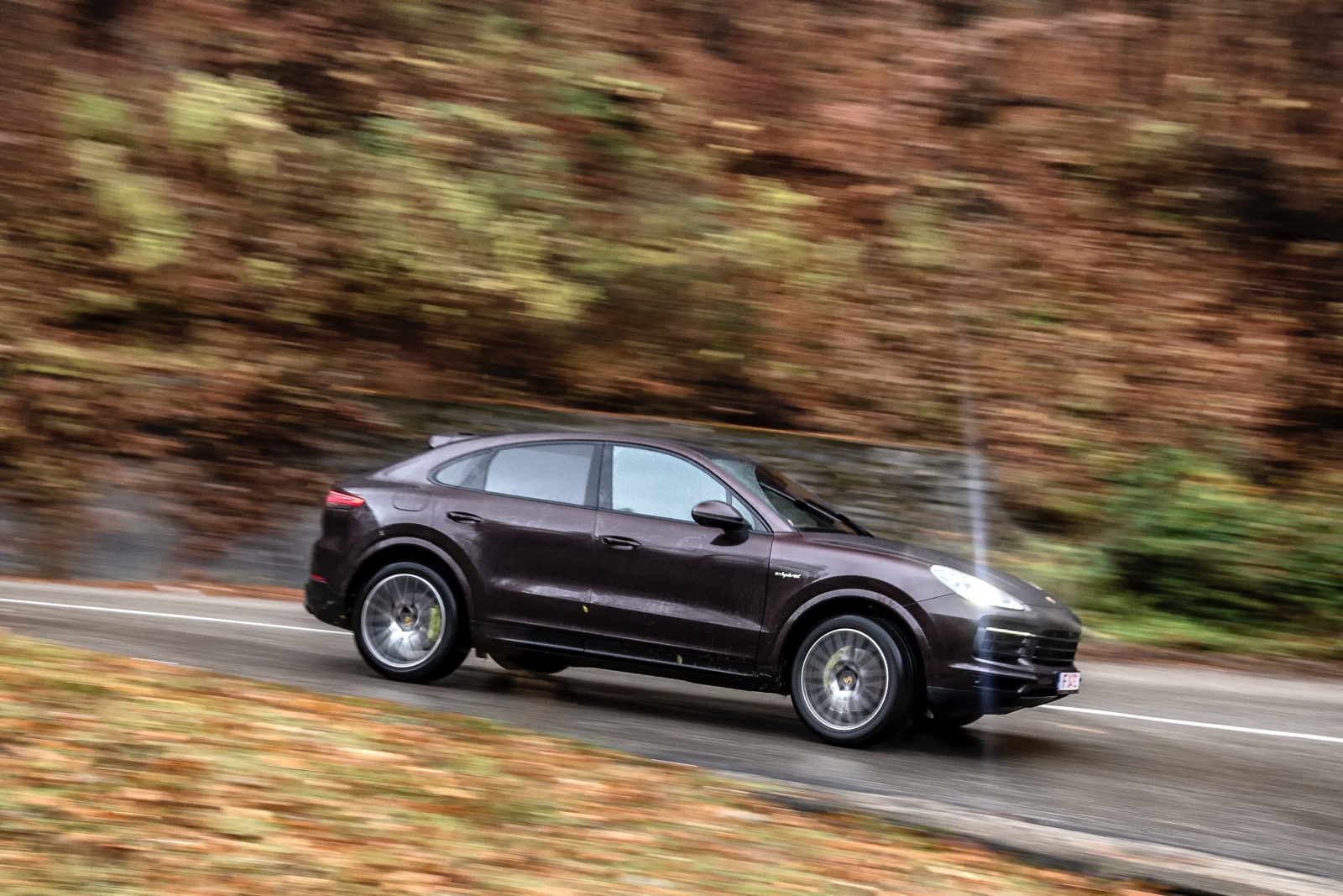 Apoi, odată ce bateria este epuizată, sau la alegerea celui de la volan, motorul termic intervine viguros în stilul Porsche. Motorul V6 de 3.0 litri este identic cu cel care se regăsește pe versiunea de bază a modelului Cayenne Coupe. Sistemul hibrid este identic cu cel al modelului Porsche Cayenne e-Hybrid. Puterea combinată a celor două surse de putere este de 462 CP, suficient pentru a propulsa modelului Cayenne Coupe de la 0 la 100 km/oră în puțin peste 5 secunde.