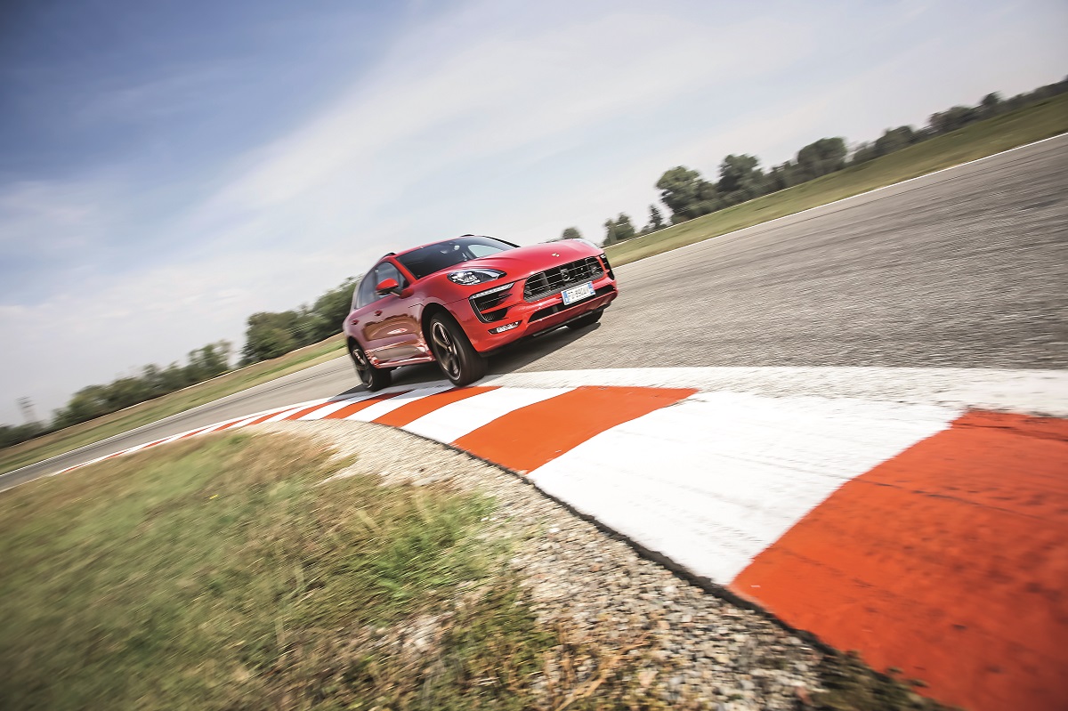 În ADN-ul său se află și zăpada, macadamul și noroiul dar vocația sa este în primul rând asfaltul și nu în cele din urmă circuitul de curse. Așadar, să nu mai pierdem timpul și să apăsăm butonul potrivit numit Sport Plus. Trenul de rulare cu jantele opționale de 21 inch devine foarte ferm pentru că Macan GTS are o gardă la sol cu 15 mm mai mică decât la Macan S, iar suspensia adaptivă PASM – standard la Macan GTS – are un reglaj și mai sportiv decât la Macan S. Motorul dă frâu liber la toți caii pe Sport Plus, iar ESP-ul căruia Porsche îi spune PSM închide câte un ochi la excesele minore și permite chiar și o supravirare pentru șoferii mai ambițioși (al doilea ochi este însă foarte vigilent).