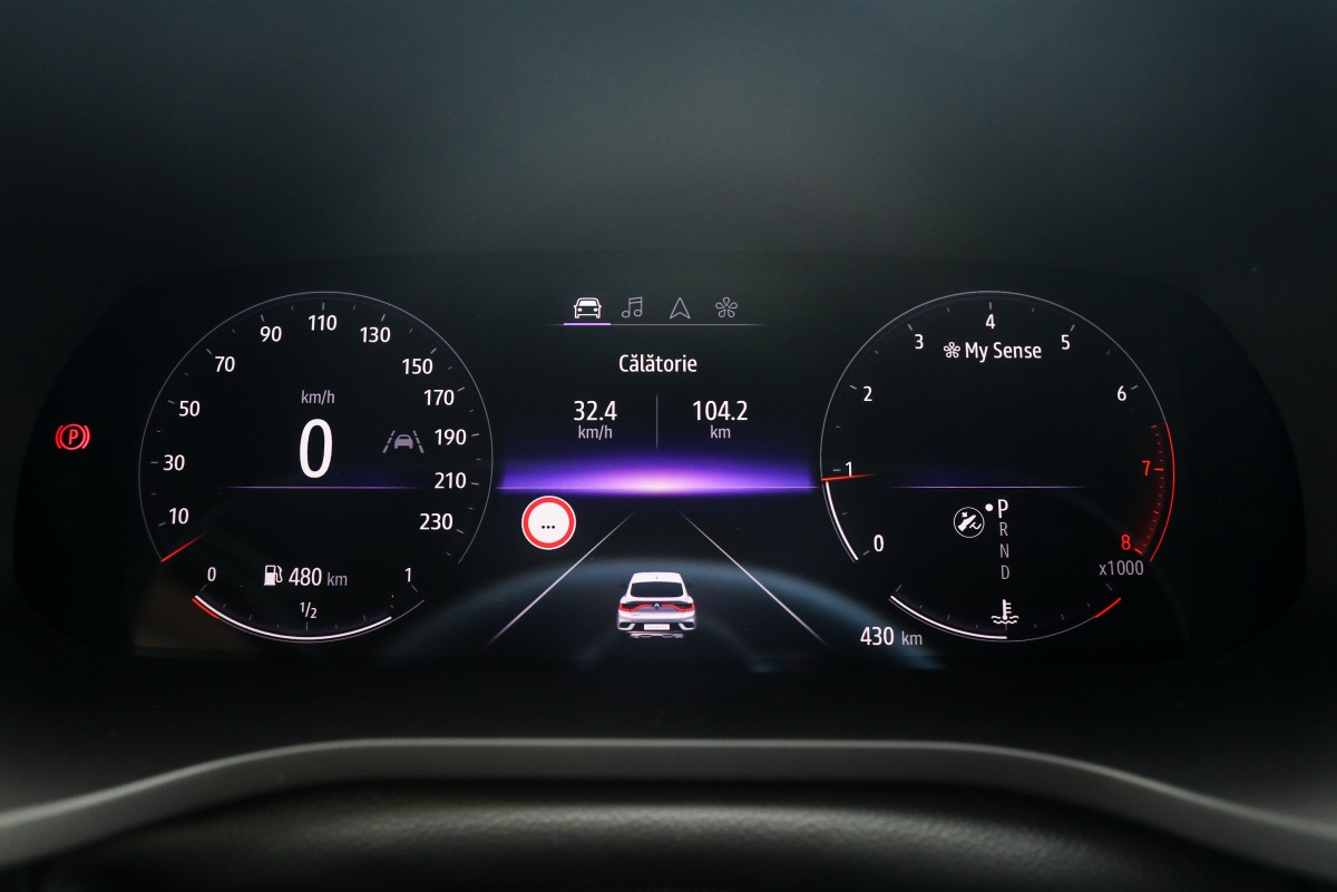 Consumă puțin. Pe porțiunile din DN1 pe care le-am prins, s-a mulțumit cu 5,3 l/100 km. Pe autostradă, la 130 km/h și 2300 rpm în tr. a 7-a, a consumat 7,5 l/100 km. În oraș n-am mers, pentru că traseul pus la cale de Renault n-a inclus și porțiuni urbane. Practic, nu ai nevoie de versiunea de 160 CP a TCe-ului decât dacă ești foarte sportiv și nu te mulțumești cu versiunea de bază. Altfel, cei 140 CP trag cu voioșie și fără să ”zgomotească”. Iar când o fac, sună sportiv, ajutate în modul Sport de sunetul virtual scos de boxele Bose.