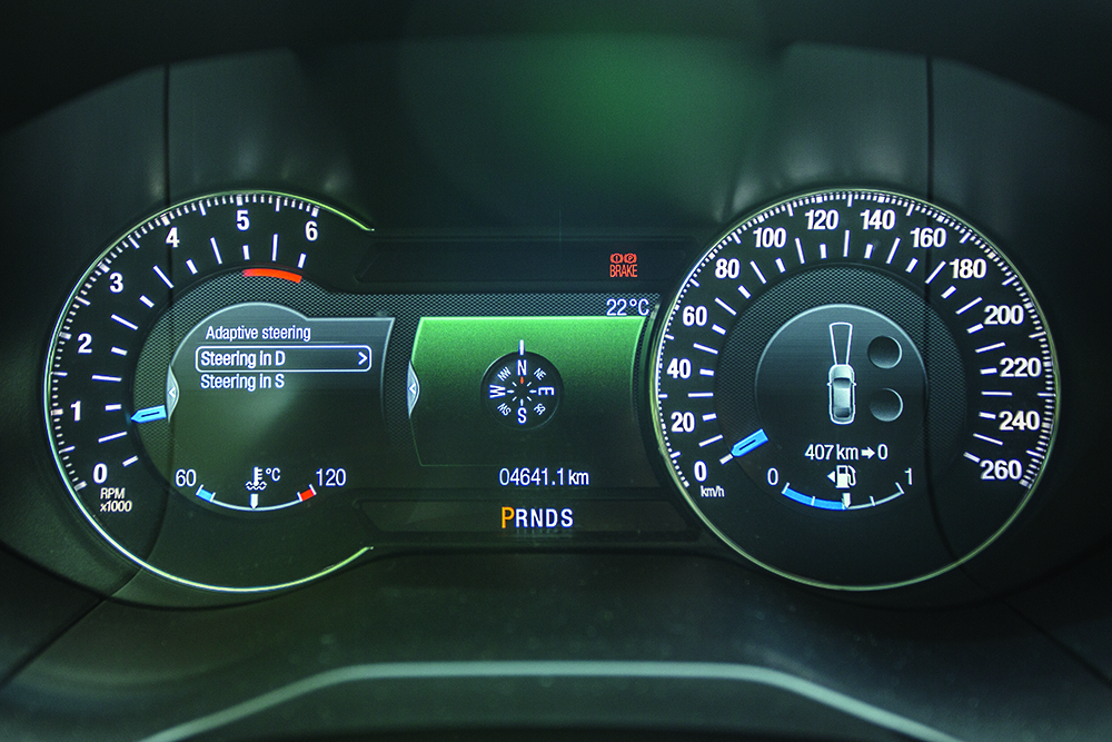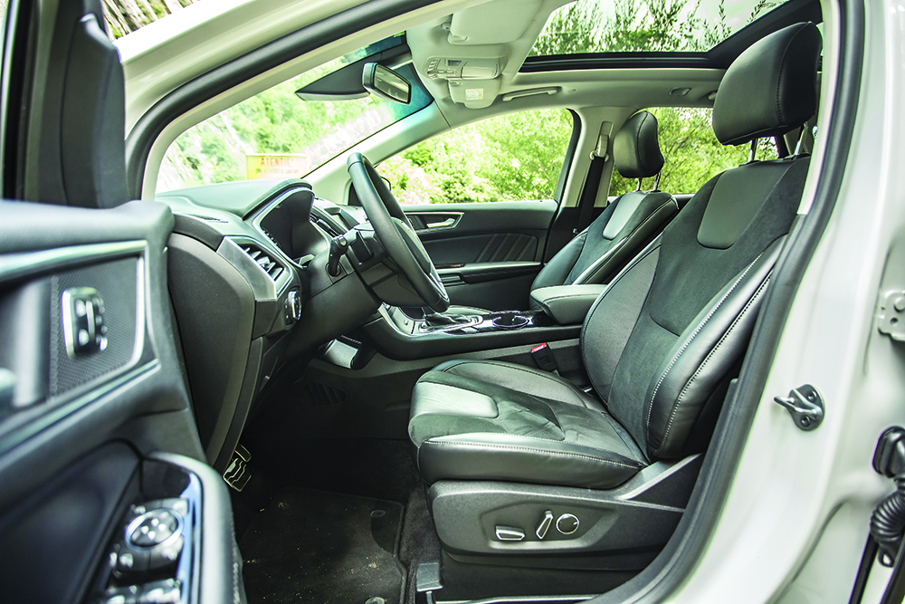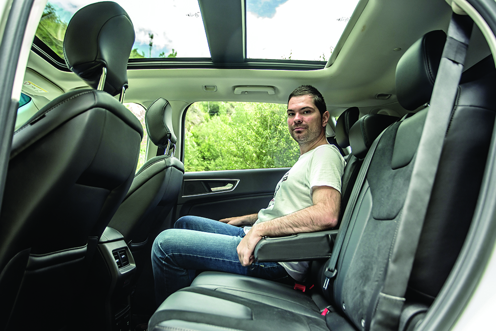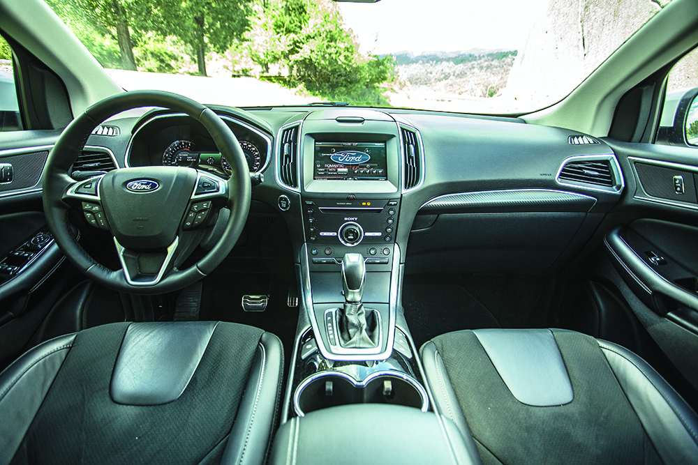 Bineînțeles, raportul maselor (58/42% față/spate) și setările suspensiei sunt diferite, însă, ținuta de drum reușită face parte din același registru. Iar Edge nu este doar vivace și agil, ci și extrem de sigur, așa cum confirmă și testele dinamice găzduite de circuitul de la Vairano: stabilitate exemplară, suspensie precisă, cu o cursă redusă și ansamblu arcuri/amortizoare excelent setat, sisteme electronice eficiente, deloc invazive. Mai presus de toate, însă, strălucește tracțiunea integrală superbă. Controlat electronic, sistemul 4×4 Intelligent AWD poate trimite până la 100% din cuplu punții din spate (vezi caseta), reușind să atenueze efectul subvirator și să mențină motricitatea la cote ideale, chiar și în lupta cu dușmanii clasici: gheața, zăpada sau ploaia. Edge este un SUV sportiv, însă unul care face rabat la confort: suspensiile sunt confortabile în general, dar ușor mai rigide pe spate. Marele Ford este, așadar, un devorator de drumuri lungi, prietenos nu doar cu membrii familiei, ci și cu bugetul acesteia: consum mediu relevat de 8,26 l/100 km. O valoare ce nu impune poate noi recorduri de eficiență, dar face cinste unui SUV mare și spațios, de peste două tone (masă la gol măsurată 2.153 kg), ce poate străbate țara în lung și în lat, cu seninătate și cu o autonomie pe măsură, garantată de rezervorul extrem de încăpător de 69 litri: 835 km.