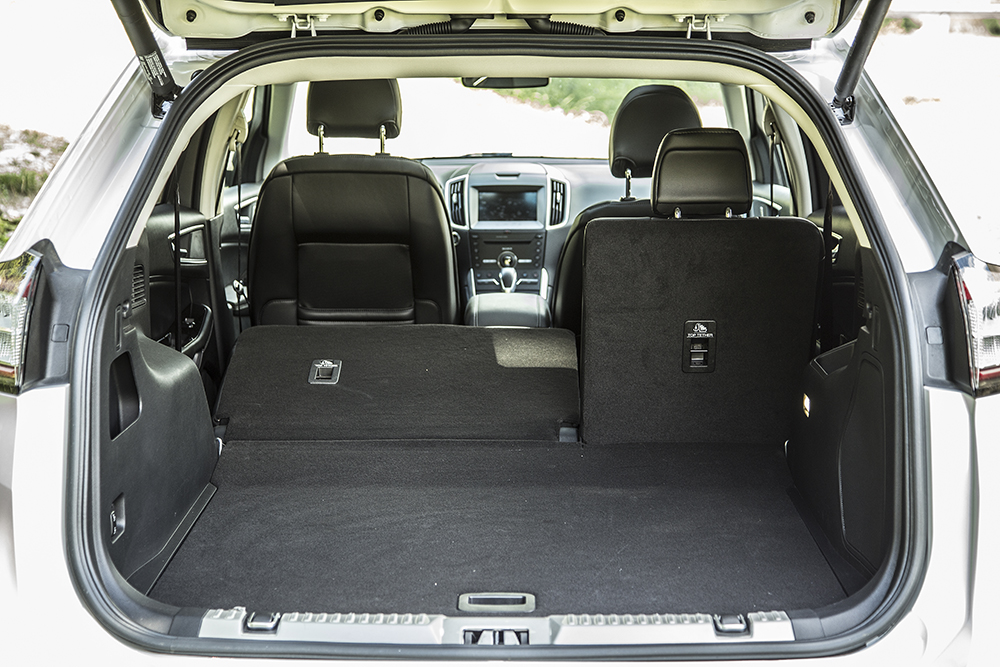 Portbagajul merită o mențiune specială, ceea ce este de așteptat de la un automobil de dimensiuni apreciabile precum Edge. Hayonul este decupat amplu, iar marginea de încărcare situată la 76 cm, suficient de coborâtă, singurul incovenient fiind bara de protecție spate proeminentă ce îngreunează sensibil accesul.