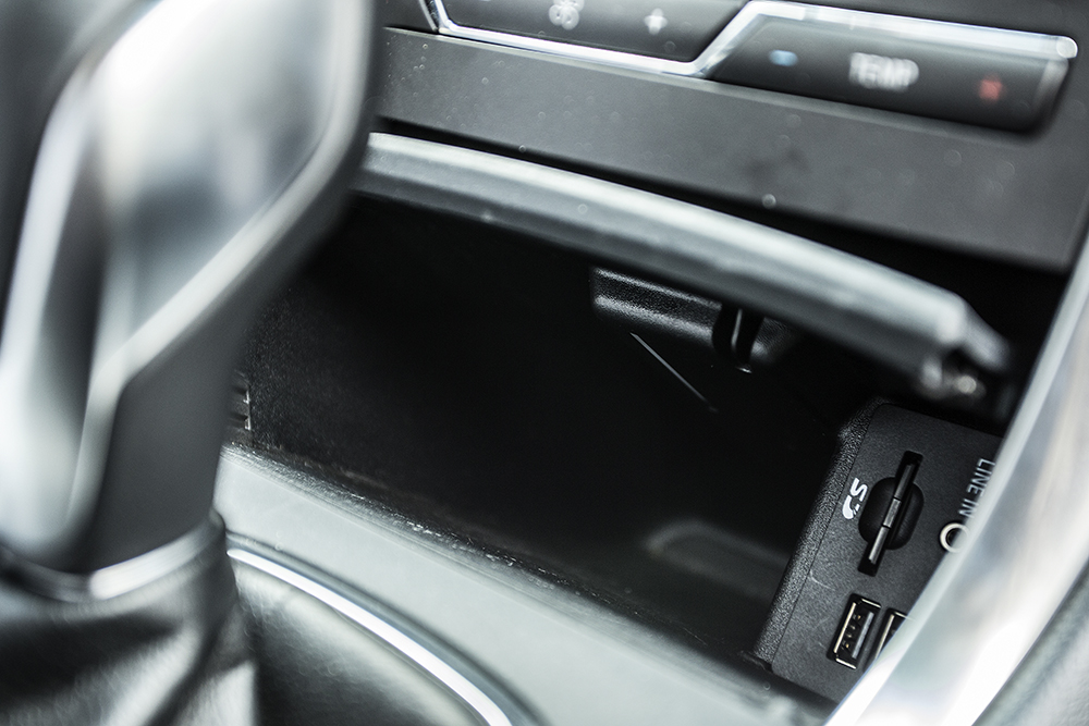 Despre interior, însă, putem spune că își trădează sorgintea americană doar la nivel de spațiu și modularitate, extrem de bine puse în scenă, finisarea respectând rigorile mult mai înalte ale școlii europene. Fără a fi exagerate prin opulență, materialele folosite pentru capitonajele bordului, fețelor de uși sau ale scaunelor sunt de bună calitate, oglindind corect pretențiile mașinii. Ergonomia este, în general, inspirată, comenzile cu adevărat importante fiind bine delimitate în trei zone distincte, pe consola centrală, pe volan și uși. Nu la fel de inspirată este centrala de comandă SYNC2: răspunsul touchscreen-ulului de 8 inch nu este mereu cel mai rapid, iar suita de reglaje dedicate climatizării (direcția curentului de aer sau viteza acestuia), accesibile exclusiv prin intermediul ecranului tactil, necesită un timp de acomodare.