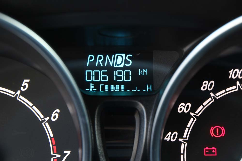Maşina noastră era echipată cu anvelope cu talon mic, ceea ce a dus şi mai mult la amplificarea acestor caracteristici, dar pe care nu le-aş putea recomanda cu căldură având în vedere grija cu care vor trebui abordate sau evitate denivelările şi gropile. Pentru a creşte şi mai mult aptitudinile sportive de care se bucură Fiesta, cutia Powershift oferă şi posibilitatea schimbării manuale a celor şase trepte, lucru care se poate face atât în modul Drive, cât şi în cel Sport. Faptul că acest lucru se face prin intermediul unor butoane plasate mai puţin inspirat, mai precis pe o laterală a schimbătorului de viteze, dar şi setarea foarte bună de care dispune modul Sport, fac inutilă folosirea modului secvenţial. Consumul în mediul urban este strâns legat de faptul că Fiesta te trage la viteză şi la un condus cu iz sportiv, ceea ce aduce o îndepărtare frecventă de cei 6,6 litri pe care cartea tehnică îi promite în mediul urban.