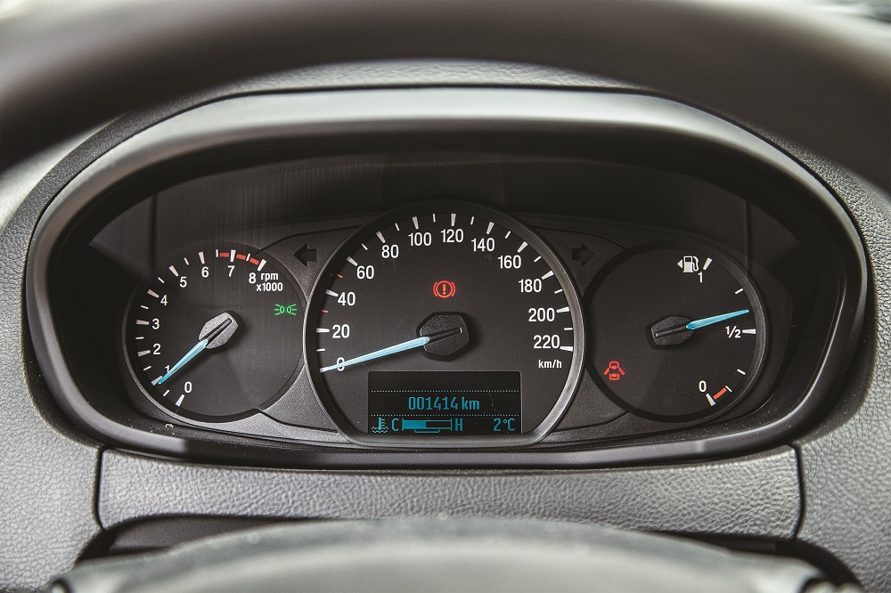 Ford Ka+Aproape nemțești sunt și îmbinările panourilor din plastic, care nu scot zgomote la trecerea peste denivelările din oraș. Nu impresionează însă cadranele tabloului de bord: vitezometrul lizibil, amplu dimensionat, care include și display-ul computerului de bord, a înghesuit celelalte două cadrane exterioare, obligându-le să-și reducă mult diametrul. De aceea, turometrul minuscul este mai greu de citit, iar asta deranjează în special la depășiri și în regim urban, când se folosesc treptele inferioare și vitezele se schimbă des. Există și un indicator de schimbare optimă a treptelor de viteze, care odată „ascultat”, permite o economie reală de combustibil, dar penalizează ușor ritmul de deplasare.