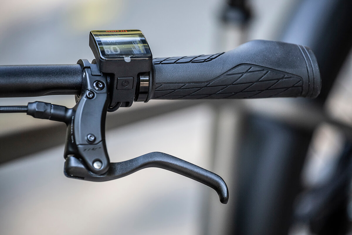 Am verificat distanțele cu aplicația Mi Fit și pot să confirm că afișajul bicicletei nu te „trage-n piept“. Nici el și nici frânele „sincere“. Tragi de manete și o oprești mai repede decât te-ai aștepta. Sistemul de frânare hidraulic are discuri la ambele roți și o finețe remarcabilă în utilizare. Știi în orice moment să dozezi forța exact.