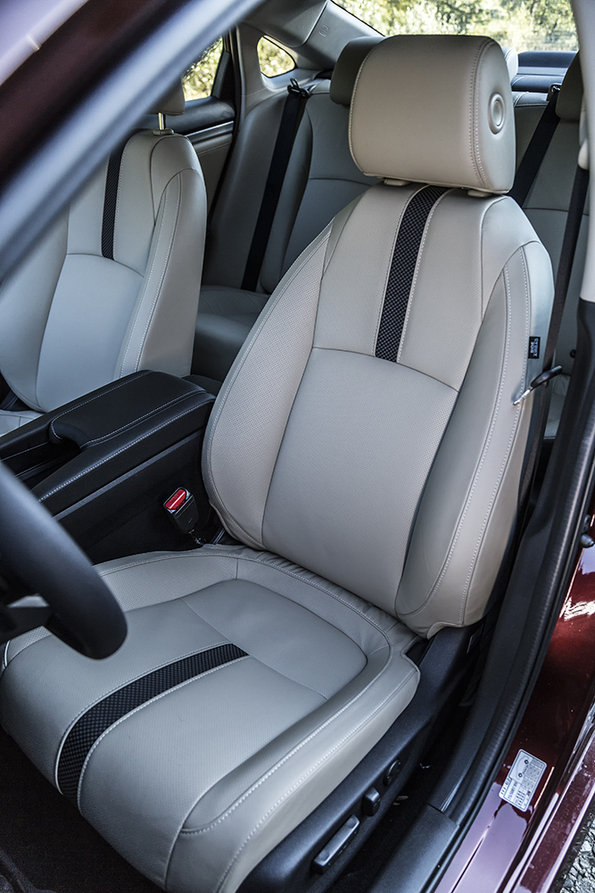 Vești bune de la răsărit: sedanul compactei Civic a fost revizuit și acum a devenit mai rafinat și mai ușor de condus. Dacă la prima vedere noile elemente pot scăpa neobservate, o privire mai atentă relevă noul calandru din plastic negru lucios care l-a înlocuit pe cel cromat, precum și ramele proiectoarelor de ceață, care nu mai au finisaj mat, ci lucios. Sub ele, marginea inferioară a barei de protecție este acum vopsită în culoarea caroseriei, pentru mai multă stabilitate vizuală, la fel ca și mânerele de deschidere a ușilor, care se integrează mai bine în designul lateral.