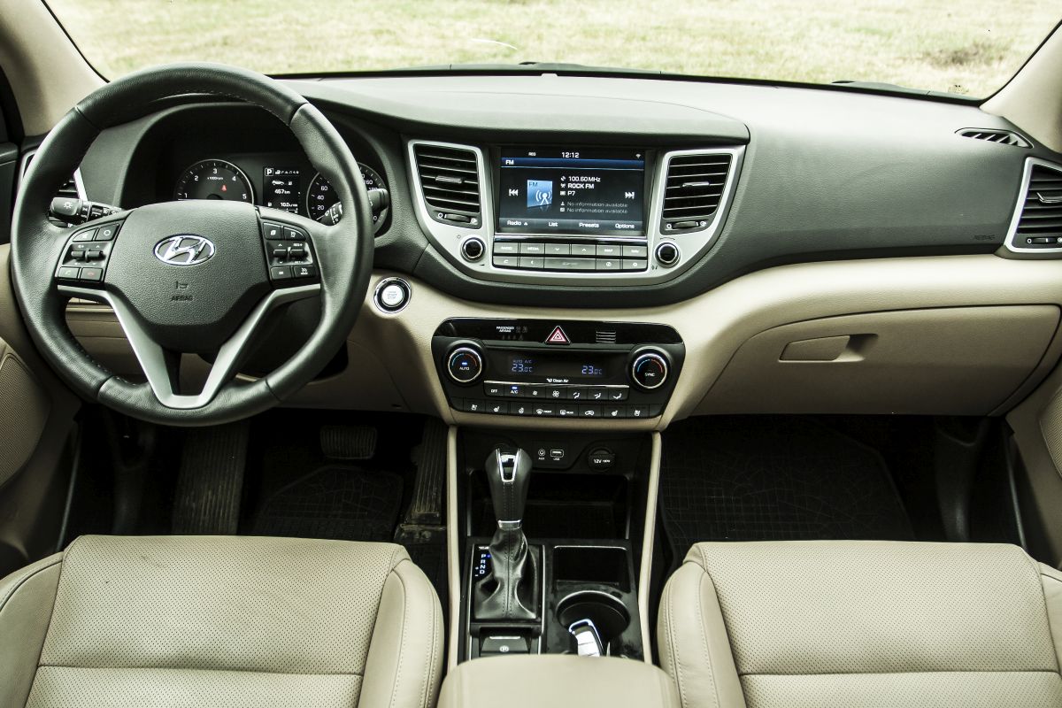 Cutia automată cu șase trepte, dezvoltată in-house de Hyundai, face pereche bună cu motorul vivace, plin de viață încă de la turații reduse, limitele transmisiei devenind evidente doar la kick-down, atunci când retrogadările ușor ezitante pot afecta reprizele. Deși contrar trendului general masa la gol a crescut cu 103 kg, Tucson reușește să fie vizibil mai sprinten decât vechiul ix35: 9,5 secunde versus 9,8 secunde pentru sprintul 0-100 km/h, respectiv viteză maximă de 201 km/h (195 km/h ix35).