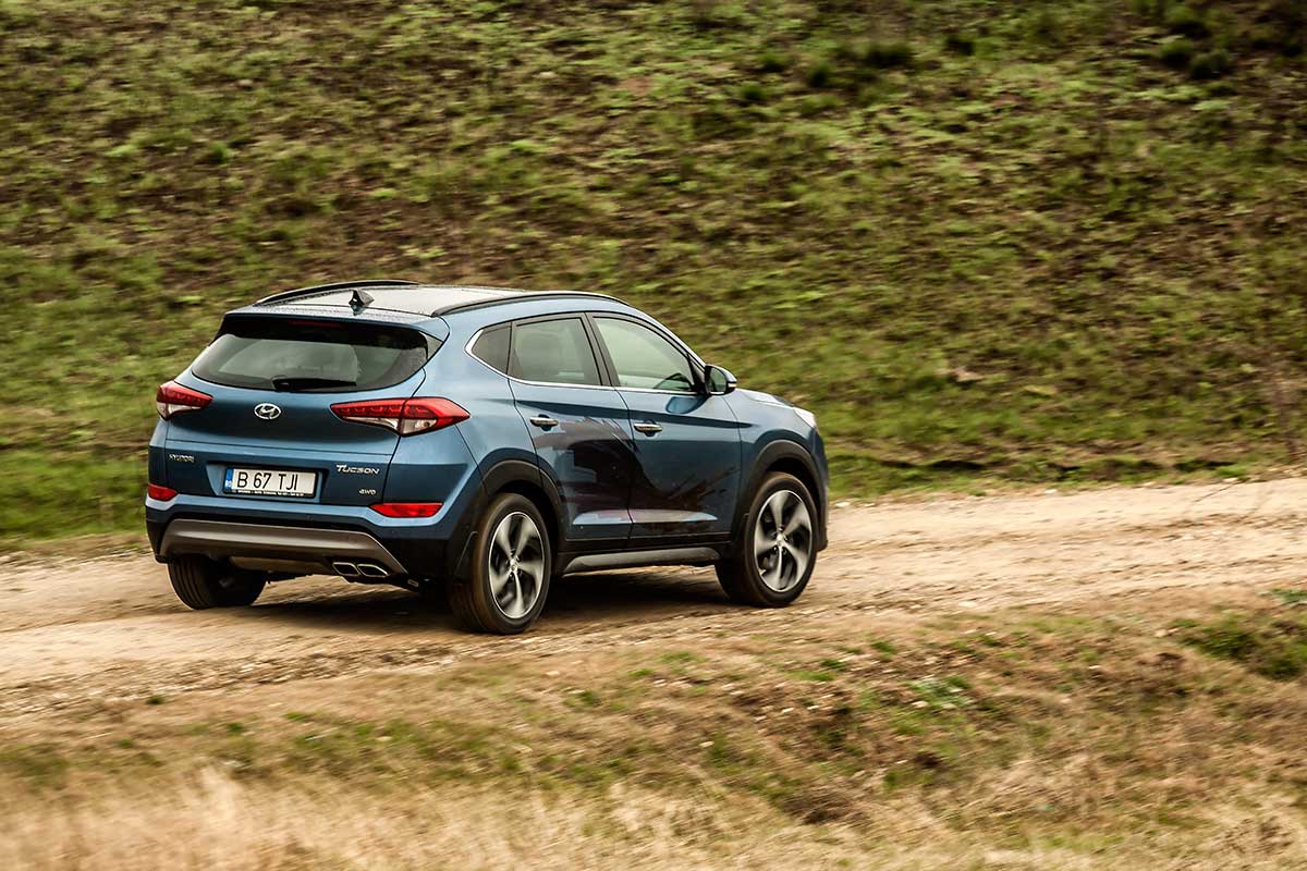O bilă albă merge către sistemul de tracțiune integrală, caracterizat printr-o funcționare discretă, dar eficientă. În condiții de rulare obișnuite, Tucson dispune doar de tracțiune față. La nevoie cuplul este trimis și punții din spate, în proporție de până la 50%, în condiții extreme, transmisia putând fi blocată în raport 50/50% (până la 40 km/h) de la butonul Lock dedicat. Pentru amatorii de off-road mediu, Tucson oferă și un sistem de asistare la coborârea pantelor, unghiurile de atac și ieșire fiind, de asemenea, îmbucurătoare pentru un SUV de familie: 17,2, respectiv 18,6 grade.