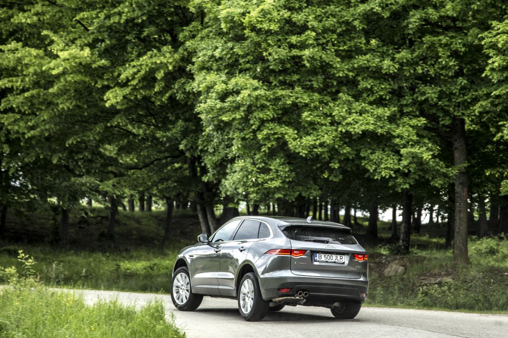 La condus, F-Pace este un adevărat Jaguar. În ciuda masei, F-Pace reacționează prompt la comenzi, iar direcția sportivă și incisivă asigură o ghidare precisă pe traiectorie. În viraje, se înclină extrem de puțin și comportamentul la limită este foarte sigur. Ca și Macan, F-Pace se conduce cu un ruliu minim în virajele rapide și trenul de rulare are rezerve mari. Însă uneori în viraje este greu să realizezi când te apropii de limită. În schimb, sistemul ESP este reglat să ofere o anume plăcere și libertate de mișcare și intervine discret la nevoie. Cu atât mai de apreciat este ruliul redus cu cât F-Pace oferă și un confort de înaltă clasă. F-Pace are o punte spate integrală (vezi caseta) care absoarbe foarte bine denivelările scurte și nu transmite nimic deranjant pasagerilor.