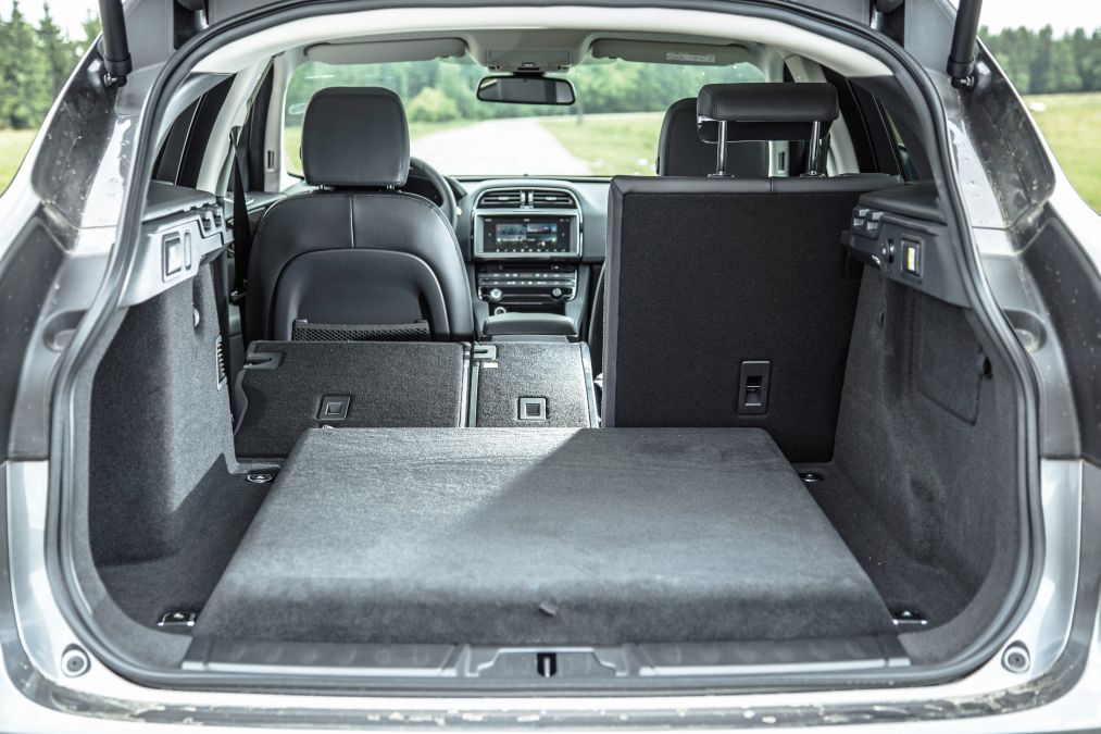 Bancheta spate este fracționabilă 40/20/40% din standard și se rabate de la două manete din portbagaj, însă suprafața de încărcare nu este plană dacă se comandă opțional roată de rezervă normală de 20 inch (492 euro). Mai ales dacă mașina este încălțată cu jante mari de 20 inch și nu cu cele standard de 18 inch, este mai rezonabilă păstrarea soluției standard cu roată de rezervă îngustă. Inedit în acest segment: acționarea electrică a înclinării spătarului banchetei spate (156 euro). Portbagajul nu are o formă perfect regulată, marginea de încărcare este relativ înaltă, la 75 cm de sol, însă volumul măsurat al portbagajului, de 421 litri (cu roată de rezervă îngustă) este rezonabil.