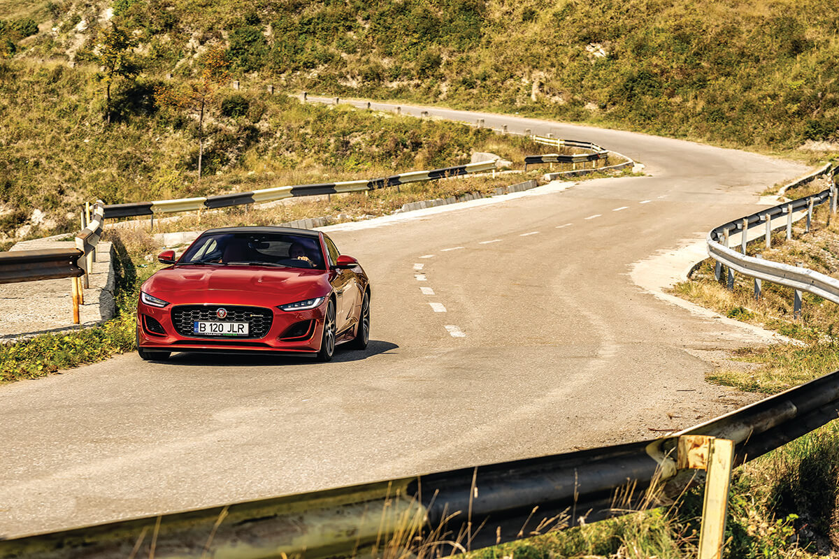 Felina asta a căpătat valențe complexe. Faceliftul de anul trecut i-a cizelat comportamentul, dar a păstrat-o la fel de amenințătoare ca întotdeauna. Acum, Jaguar F-Type toarce ca o pisicuță când o mângâi, dar sare la gât când o calci pe coadă. Foto: Bogdan Paraschiv