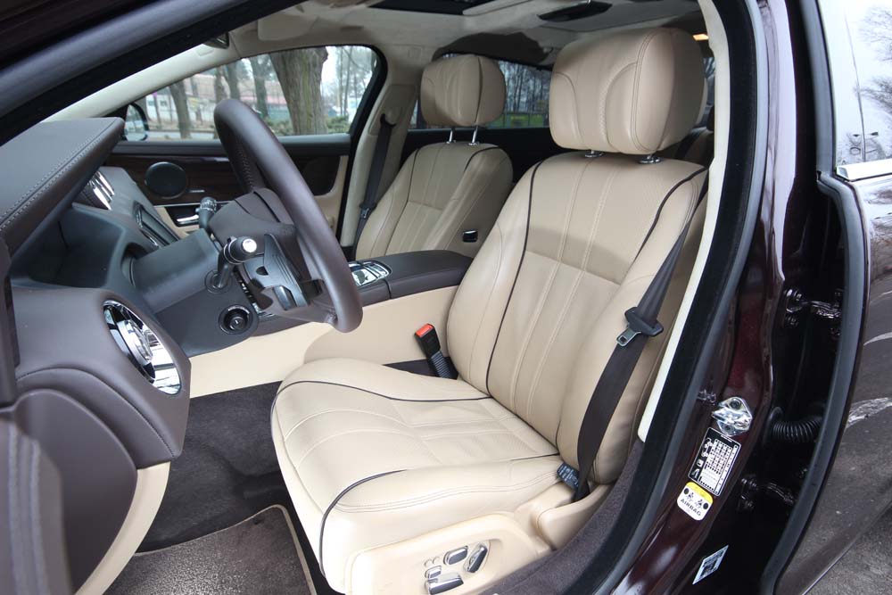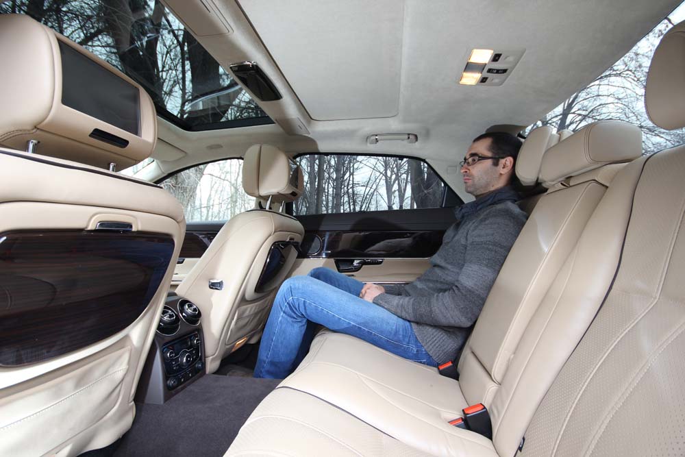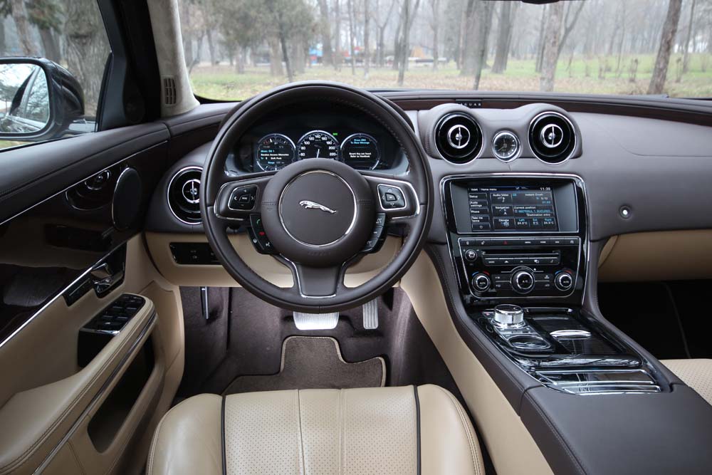 Probabil ca intr-un test pe circuit un Seria 7 configurat similar va afisa timpi comparabili, dar pentru un sofer normal, XJ iti va da mai multa incredere, indiferent ca faci o manevra la limita sau pur si simplu te deplasezi cu o lentoare tipica unei feline in cautarea momentul ideal sa iti incordezi muschii. In acest ultim scenariu recunosc ca as fi apreciat un raspuns ceva mai prompt din partea ansamblului motor/transmisie, dar as putea trece peste asta deoarece in modul Dynamic cu transmisia in modul manual lucrurile se imbunatatesc evident. Interiorul este ceva mai controversat, in ideea in care XJ incearca un mixt intre tehnologia pe care o astepti atunci cand scoti din buzunar in jur de 100.000 de euro si abordarea tipic britanica axata pe linii clasice si suficient lemn si piele cat sa puna pe fuga orice activist Green Peace. Ca in orice mixt, trebuia sa existe un compromis, iar latura high tech a avut de pierdut cu un ecran digital cu o rezolutie modesta si un raspuns tactil la fel de modest.
