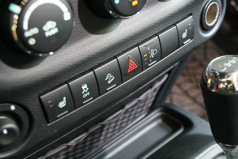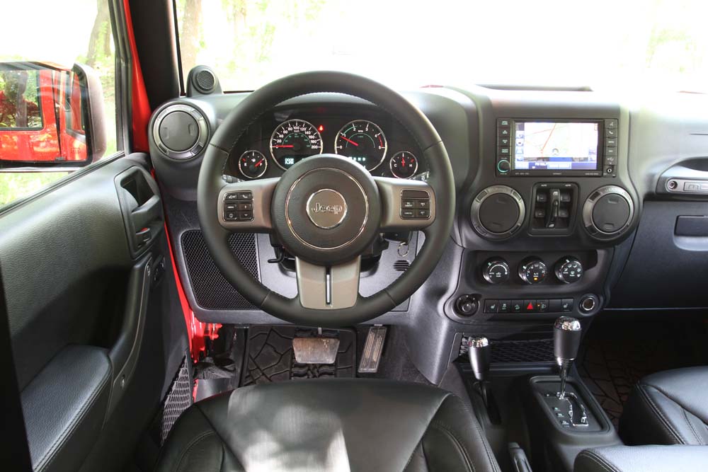 În interior lucrurile stau la fel de bine, habitaclul spartan având de câștigat acum datorită tapiţeriei din piele, a inserţiilor de culoare gri prezente pe uși și bord. Scaunele beneficiază de încălzire, iar în bord a fost integrat un sistem multimedia cu navigaţie Garmin și hard disk de 40 GB. Aș putea adăuga pe lista elementelor care produc senzaţie și covorașele speciale din cauciuc cu model de anvelope, de asemena originale Mopar și care promit că vor rezista cu brio la praf și noroi.