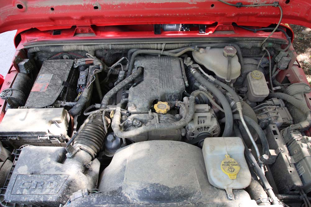 Sub capotă se află același diesel de 2.8 litri de provenienţă VM, ce produce 200 CP, suficienţi pentru a propulsa cum se cuvine o caroserie deloc ușoară, cum este cea a versiunii Unlimited pe care am avut-o la test. Cutia de viteze automată este destul de lentă la plecările de pe loc, dar oferă confort la drum întins și lejeritate atunci când ai de abordat diverse obstacole în teren accidentat, acolo unde un sistem clasic cu ambreiaj uscat, aduce destule dezavantaje. La drum întins cei 200 CP încep să își facă simţită prezenţa odată cu creșterea vitezei, acolo unde forma deloc aerodinamică a mașinii ar fi pus în impas o motorizare mai slabă și care face ca mașina trecută de două tone să atingă viteze de care nu ai fi crezut că este în stare.