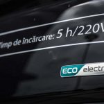 Apăs tasta ECO, care scade sensibilitatea pedalei de accelerație și pornesc. Adopt un stil de conducere normal, fără accelerări bruște sau viteză de melc, iar computerul de bord mă recompensează cu nota 8, valoarea maximă a scorului Eco, pe care o păstrez fără efort. Tot ce trebuie să fac este să am grijă ca la accelerare să păstrez indicatorul consumului de energie în zona verde Eco, evitând urcarea spre Power și observ că autonomia scade mai lent decât distanța parcursă de mine.