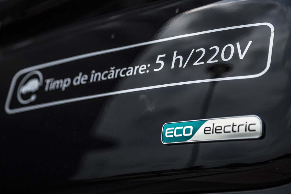 Sunt valori teoretice, pentru că în practică ar mai trebui scăzut 10%: niciuna dintre baterii nu permite descărcarea completă, care ar scădea durata de viață. Calculând la prețul de 0,16 lei/kWh (tarif de noapte), rezultă un cost de 1,83 lei/100 km, echivalentul a 0,3 l/100 km benzină! Dacă porniți climatizarea, autonomia va scădea cu 10%, însă scaunele față încălzite/ventilate în 3 trepte rezolvă problema fără scăderea sesizabilă a autonomiei. La drum întins, păstrarea în zona eco a vitezometrului înseamnă rularea cu maximum 65 km/h, cu un consum de 8,8 kWh/100 km. De-aici, consumul crește proporțional cu viteza: la 80 km/h – 12,7 kWh/100 km, iar la 100 km/h atinge 16 kWh/100 km.