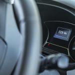 „Deloc promițător”, îmi spun, și încep testul urban resetând valorile anterioare de consum. Cuplez programul B al transmisiei automate, care asigură o regenerare maximă a energiei consumate la frânare și care, în practică, se simte precum o frână de motor puternică. Astfel, aproape că pot să conduc în oraș fără să apăs pedala de frână.