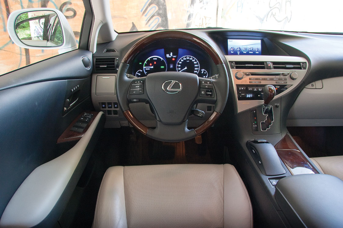Lăsând argumentele de ordin financiar la o parte pentru moment, acest RX 450h ascunde sub exteriorul discret prin excelență o întreagă armată de soluții tehnice inovatoare. Începând cu partea din față a mașinii avem un motor pe benzină de 3.5 l și 249 CP, lângă el un motor electric de 123 KW, iar în spate un alt motor electric de data aceasta de 50 KW și un pachet de acumulatori NiMH. Un calcul destul de complicat mai târziu și rezultă o putere totală a ansamblului benzină plus electric de 299 CP, peste ce oferă majoritatea motoarelor diesel de cilindree de 3 l. În același timp, prezența motorului electric din zona punții spate oferă posibilitatea rulării în modul 4×4 fără a fi nevoie de o legătură fizică între motor și punte.