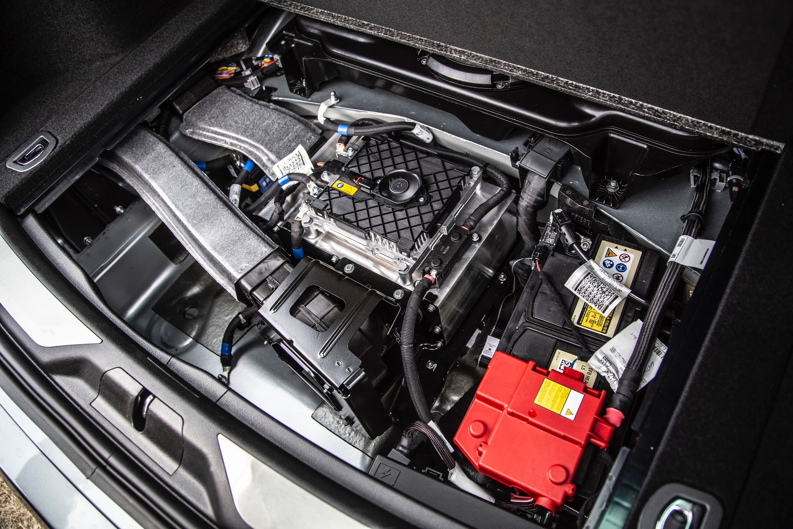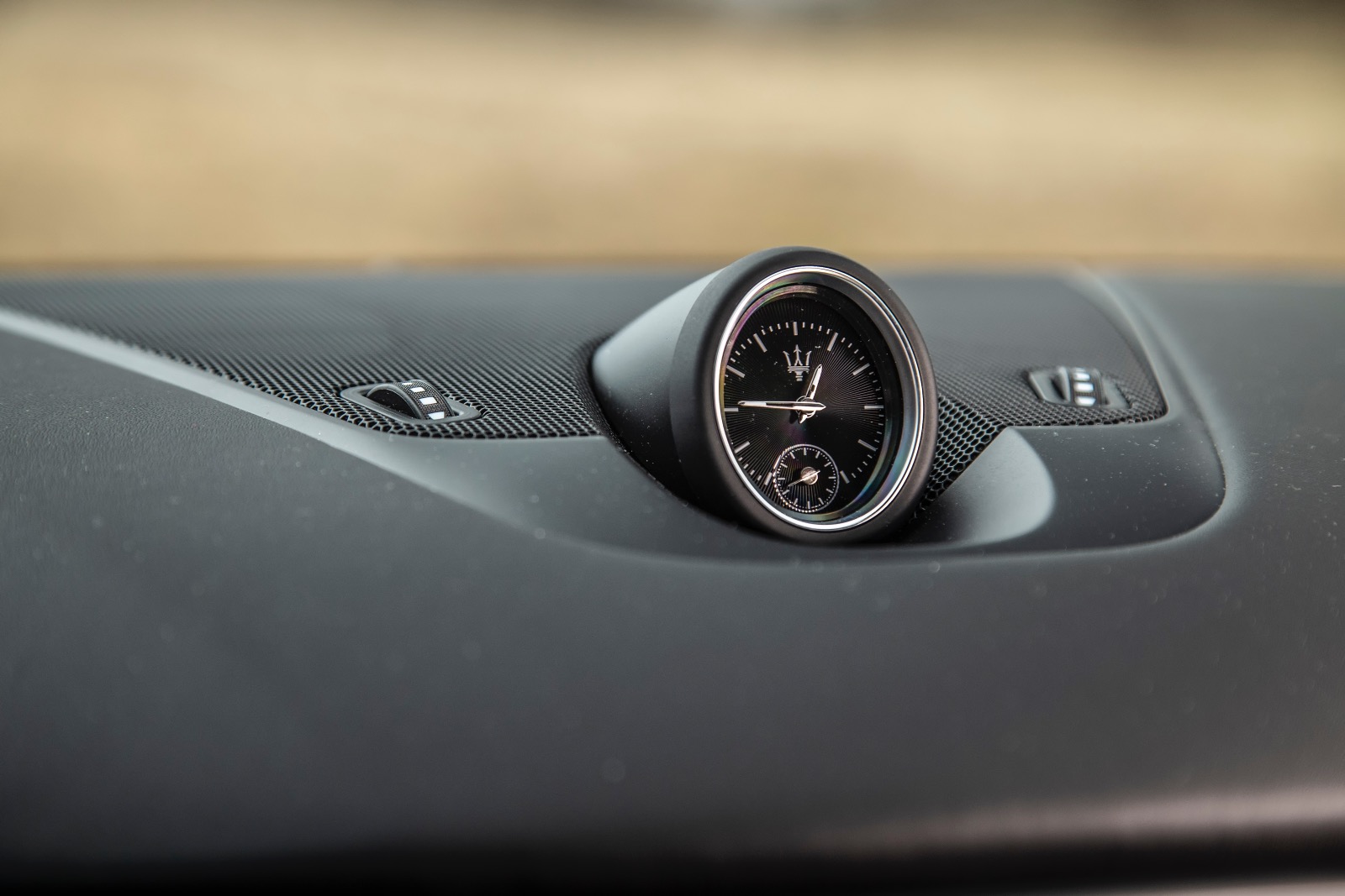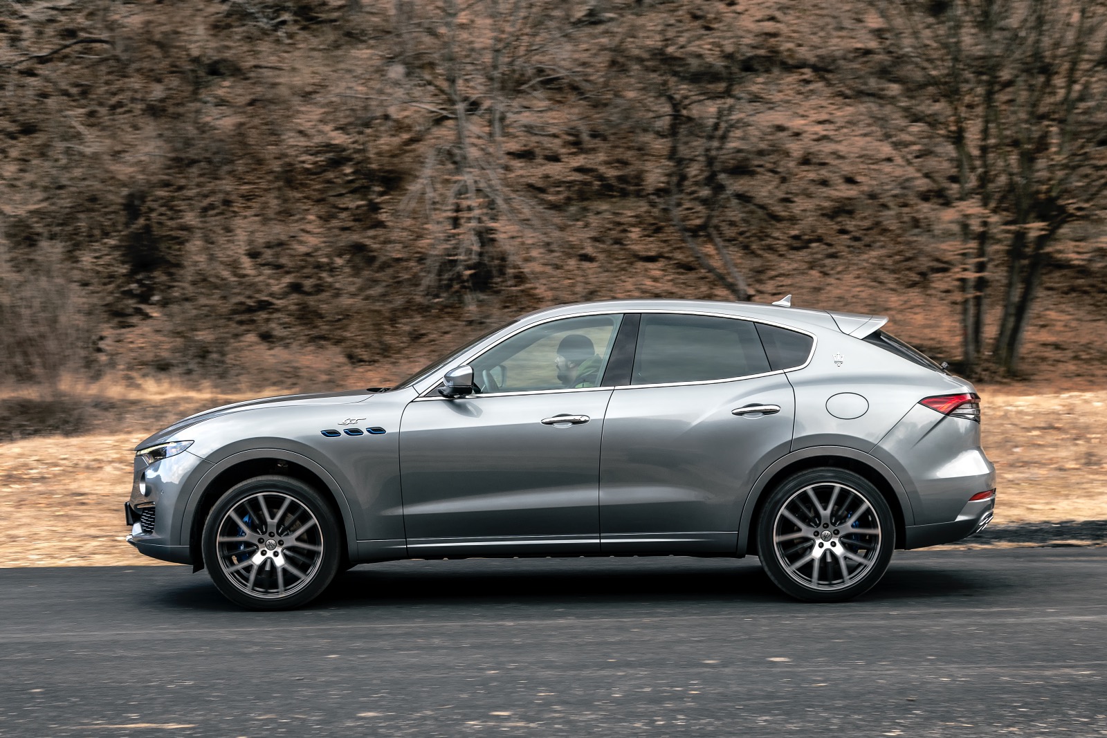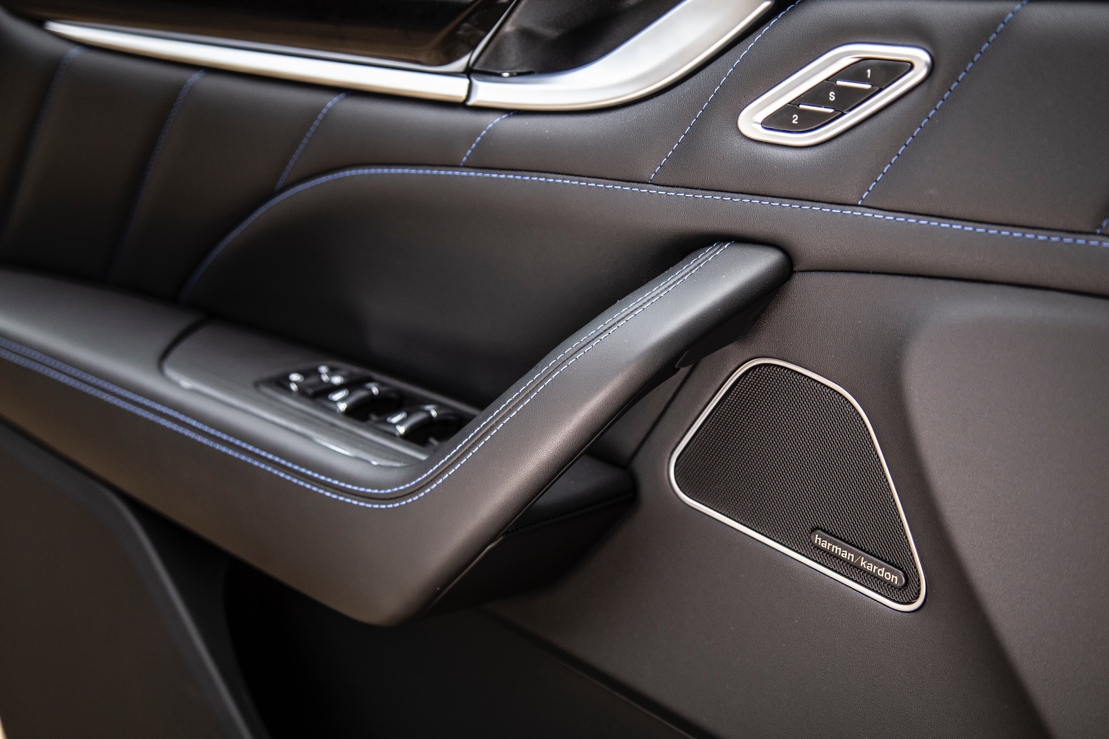 În habitaclu, nu poți să nu remarci scaunele ample și confortabile, materialele de calitate, finisările bune (dar și mult plastic piano black), chiar dacă poate nu sunt la nivelul celor oferite de concurența germană. Tapițeria de piele are cusături albastre, iar pe tetieră, tridentul mărcii este brodat tot cu albastru. Sunt elemente specifice hibridului, care nu se regăsesc la celelalte versiuni ale modelului Levante. Tema elementelor de culoare albastră se regăsește și la exterior, sub forma unei serii de inserții discrete la nivelul celor trei prize de aer laterale. Un alt element specific sunt etrierele sistemului de frânare vopsite în același albastru.