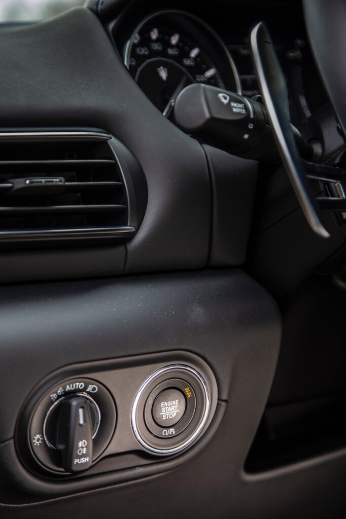 Apropo, Levante folosește o singură manetă în partea din stânga a volanului, ce include comenzile pentru semnalizatoare, dar și ștergătoare. Pentru acționarea levierului cutiei automate, trebuie acționat trăgaciul de sub acesta, iar uneori cutia este derutată dacă turația motorului este ridicată și nu va selecta poziția D sau R.
